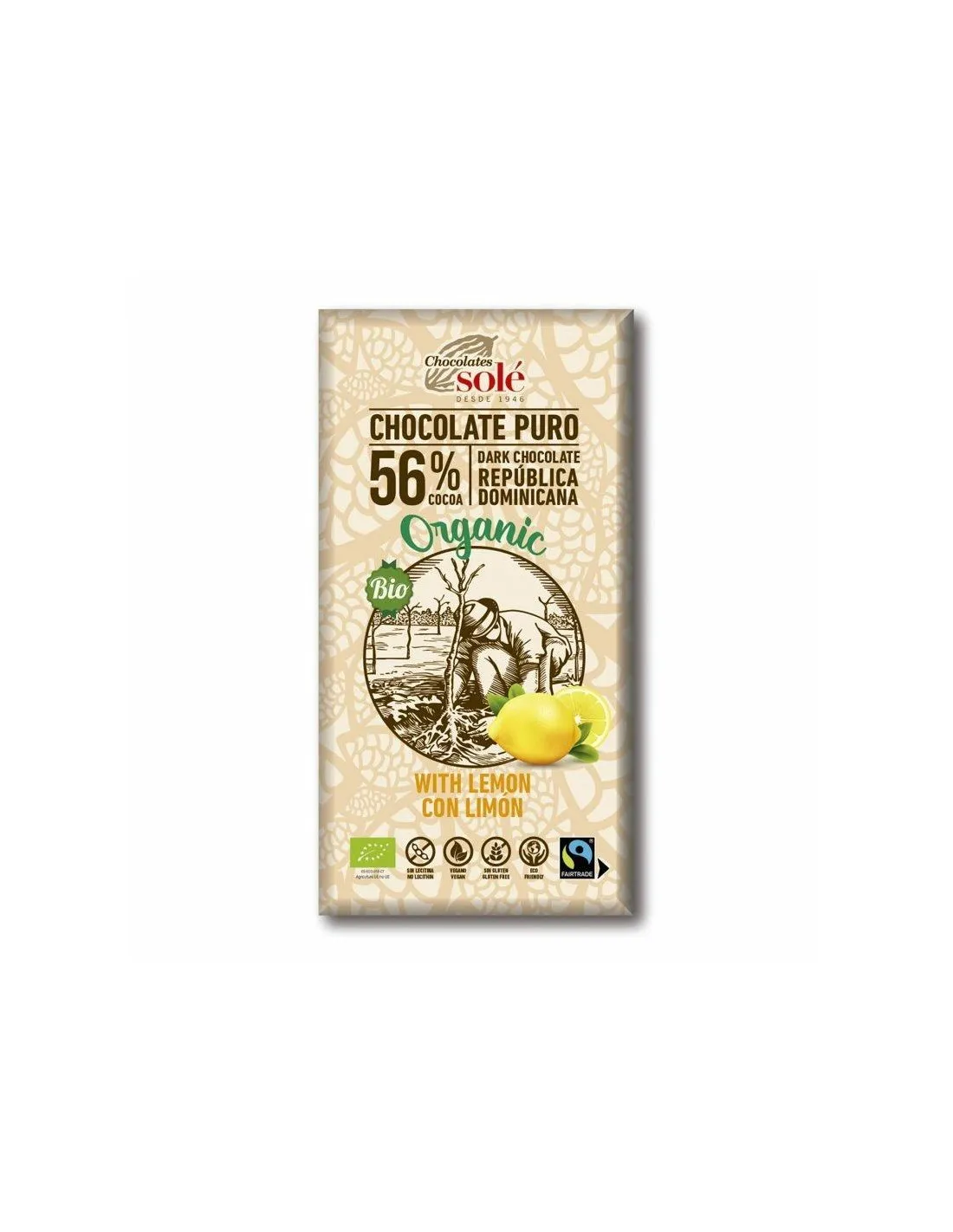 Chocolates Solé - 56% organiczna czekolada z cytryną. Delikatne nuty cytryny w ciemnej czekoladzie.