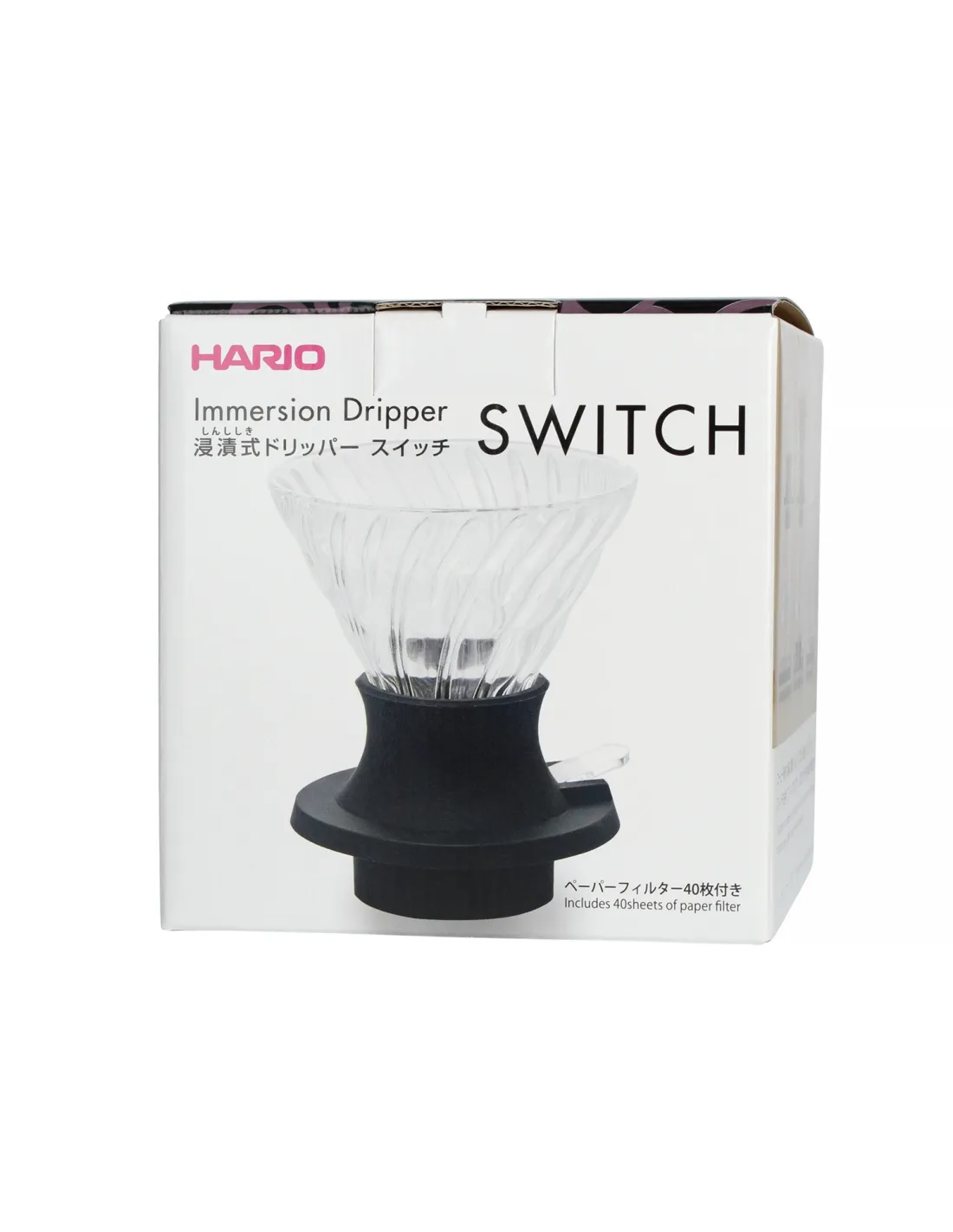 Dripper Switch to nowy projekt japońskiej firmy Hario. W urządzeniu tym spotykają się dwa sposoby przygotowywania kawy - zanurzeniowy (jak we frenchpressie) i przelewowy (kawa z dripa). Specjalna stalowa kulka zamyka otwór w dripperze, zapobiegając natychmiastowemu wylewaniu się wody na serwer.