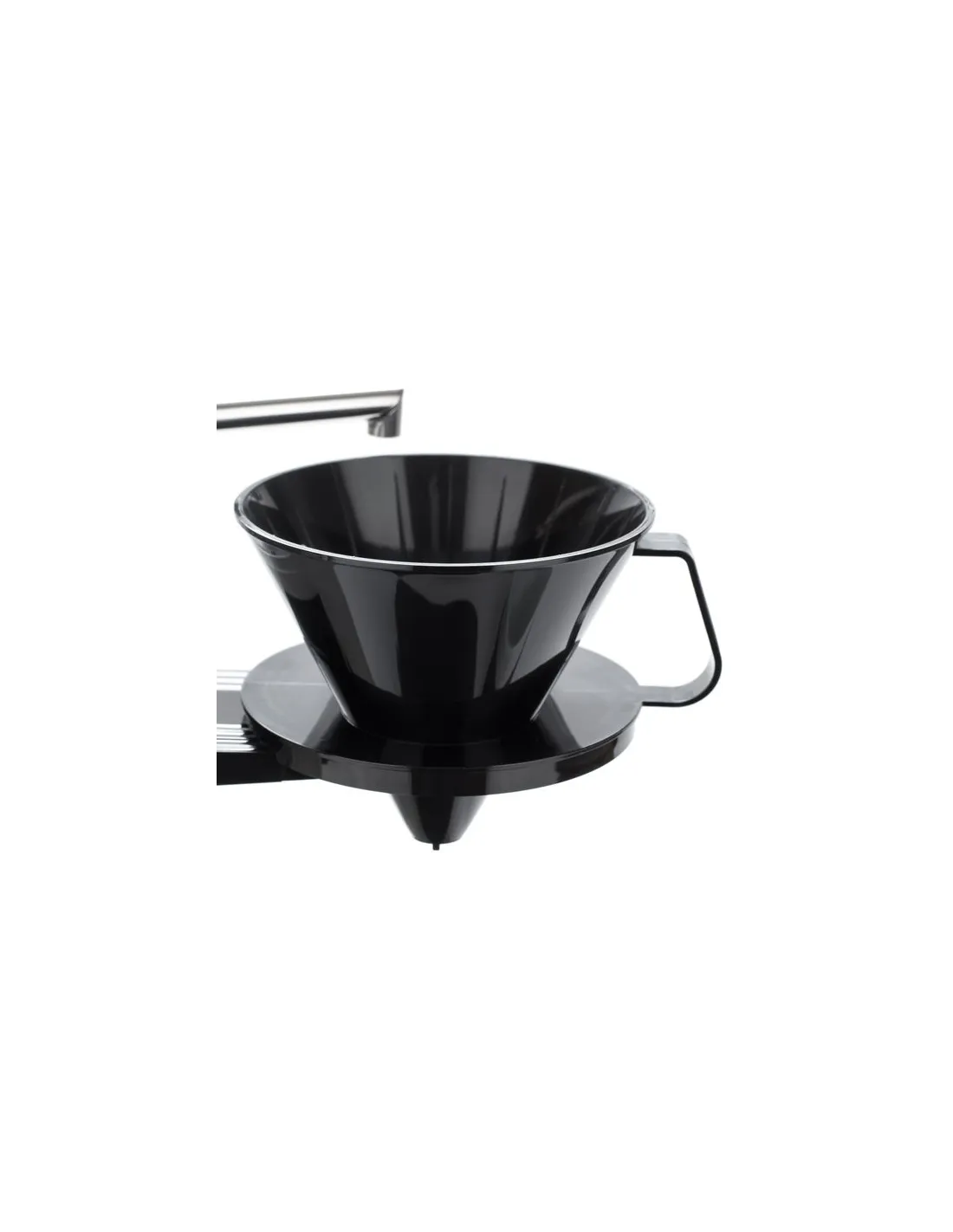 Absolutno bistvena lastnost tega kavnega aparata je, da med postopkom ekstrakcije ohranja stalno temperaturo 92-96 °C. Za enakomerno vlivanje majhnih količin kave poskrbi posebna vrtljiva glava. Svojo najljubšo skodelico preprosto postavite pod plastični filtrirni lijak in kava bo kapljala neposredno vanj. Pri tem vam sploh ni treba skrbeti za zapletenost celotne naprave. Kavni aparat ima le en gumb za izklop in vklop, po filtriranju kave pa ga odlikuje samodejni izklop. Priročna je tudi podloga za skodelice, ki jo lahko enostavno odstranite.