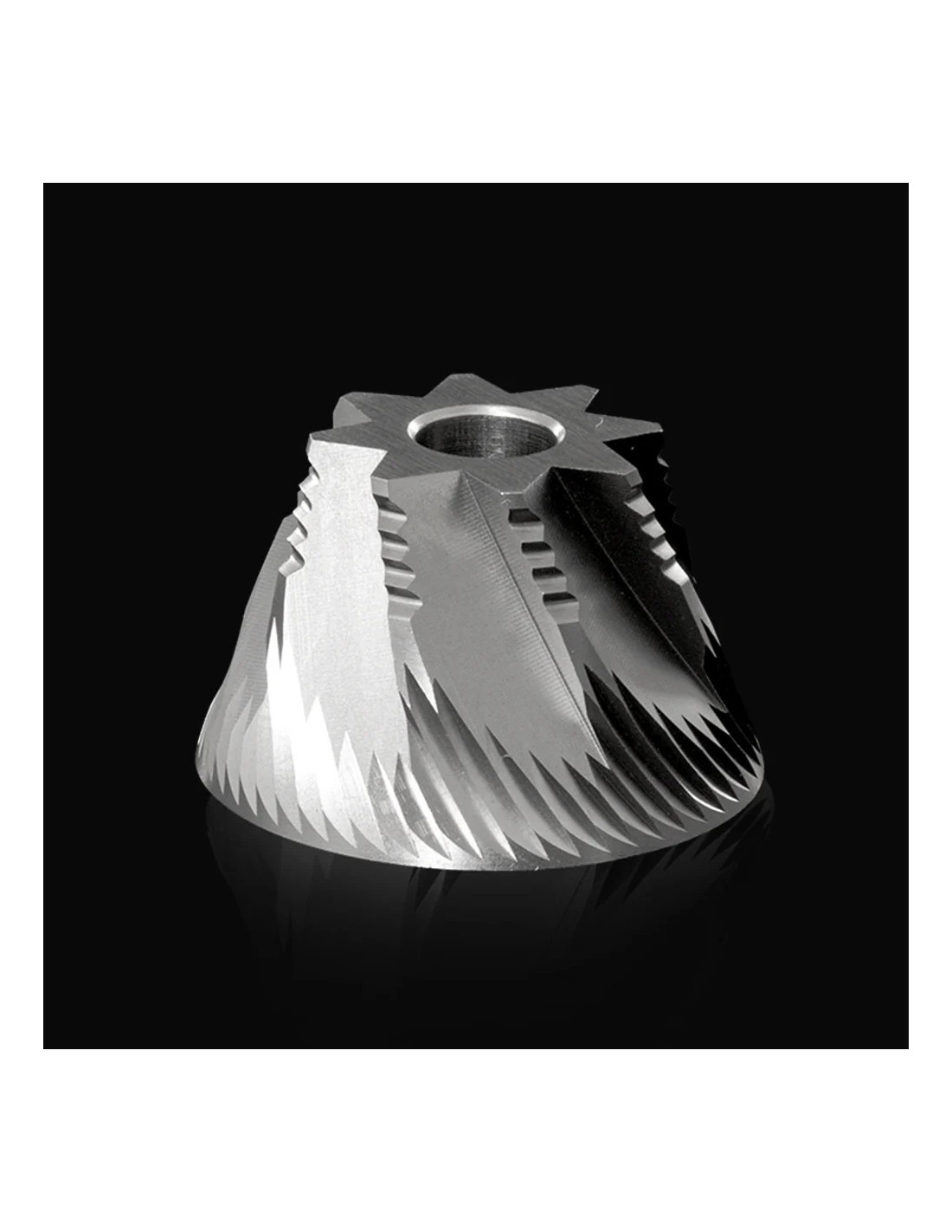 V notranjosti so profesionalni 42 mm stožčasti kamni S2C-042-EI, ki so iz kaljenega jekla (58 HRC) rezkani s 5-osnim CNC. Ponujajo natančno nastavitev 0,025 mm, s katero lahko enostavno prilagodite mletje za espresso, moko, V60 ali French Press.