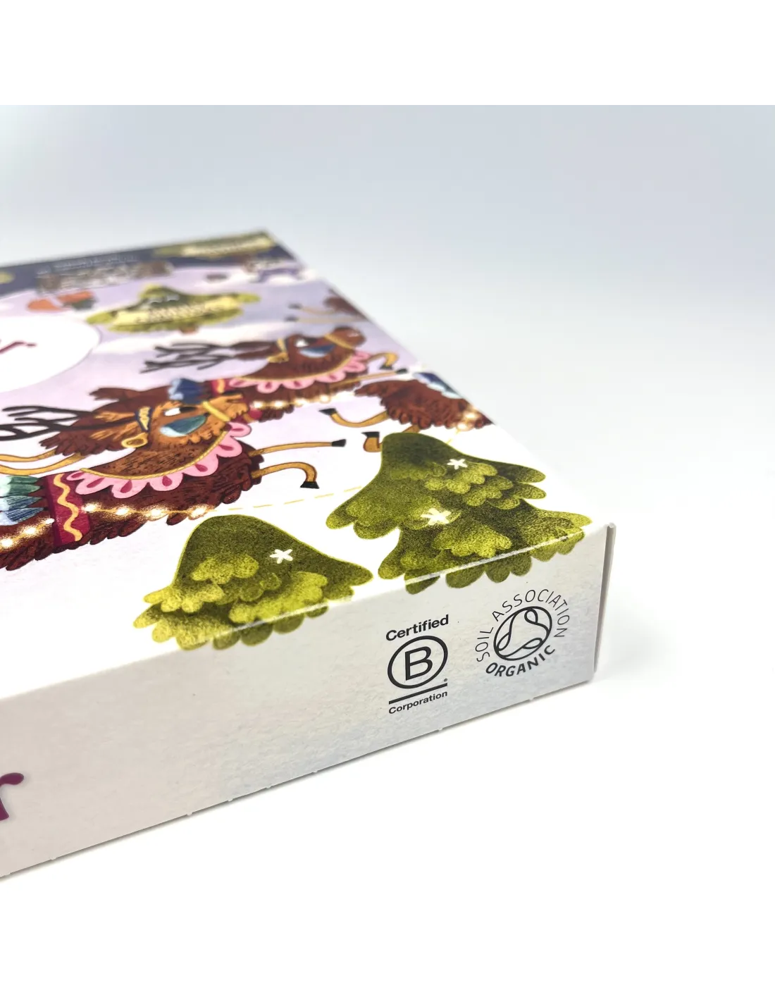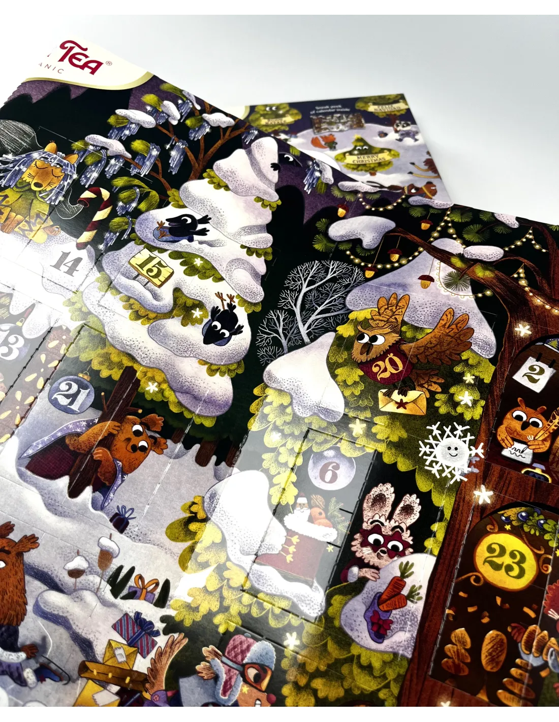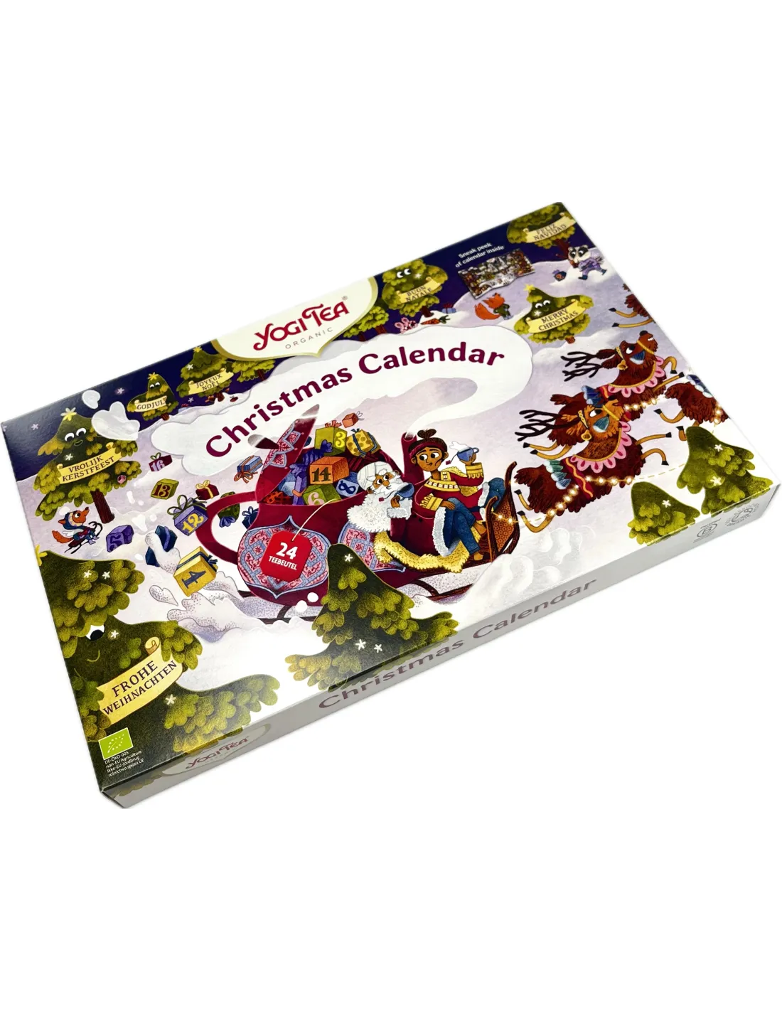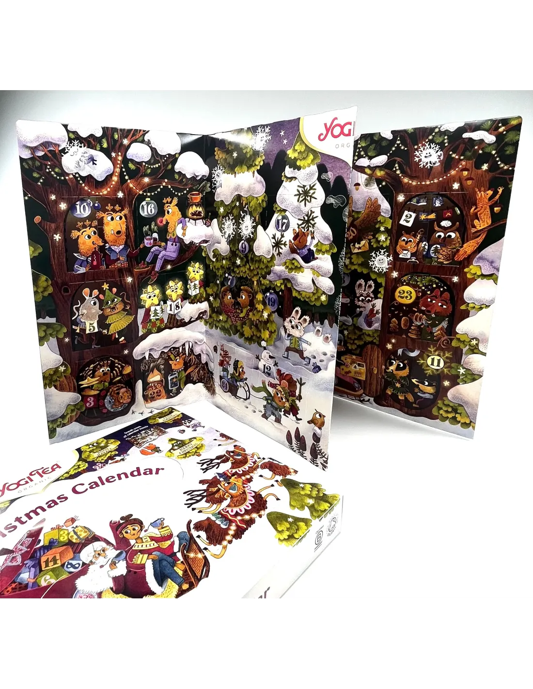 Adventni koledar z božičnim dizajnom ponuja 24 vrečk različnih čajnih mešanic YOGI TEA®.