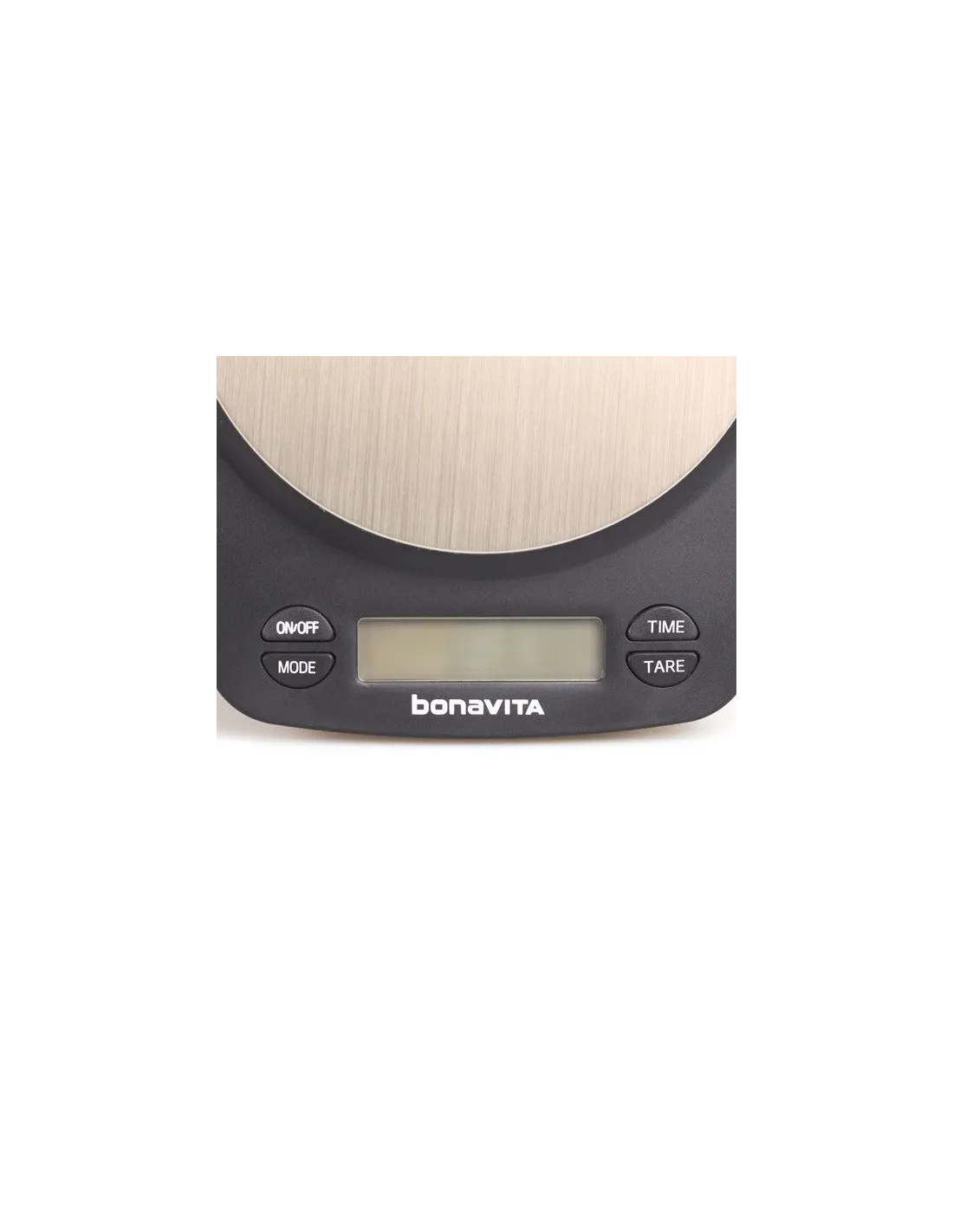Vodoodporna digitalna lestvica Barista Bonavita z vgrajeno štoparico, baterijo in natančnostjo tehtanja do 0,1 g. Nova različica s 1. julijem 2017 ima vgrajeno akumulatorsko baterijo in kabel USB.