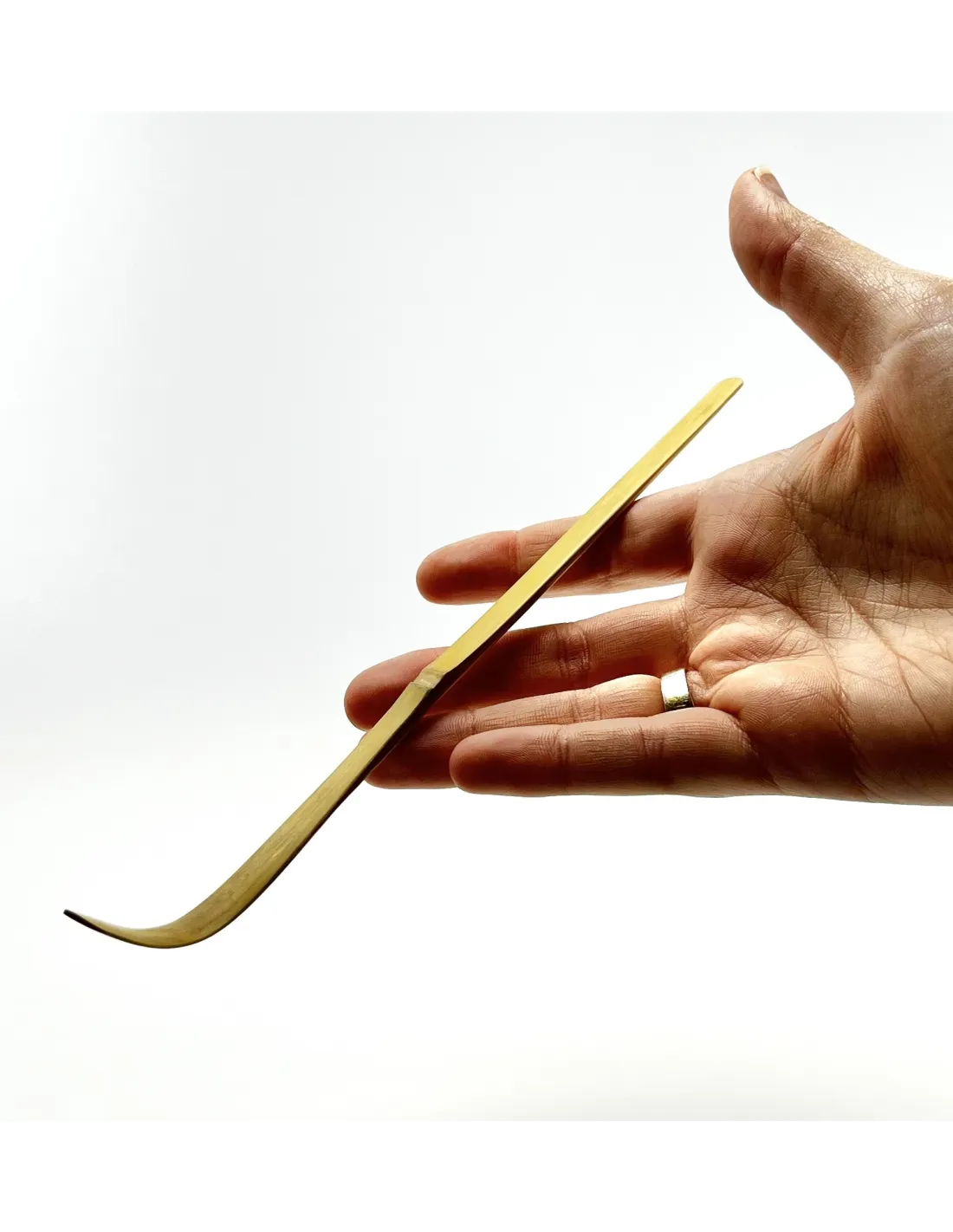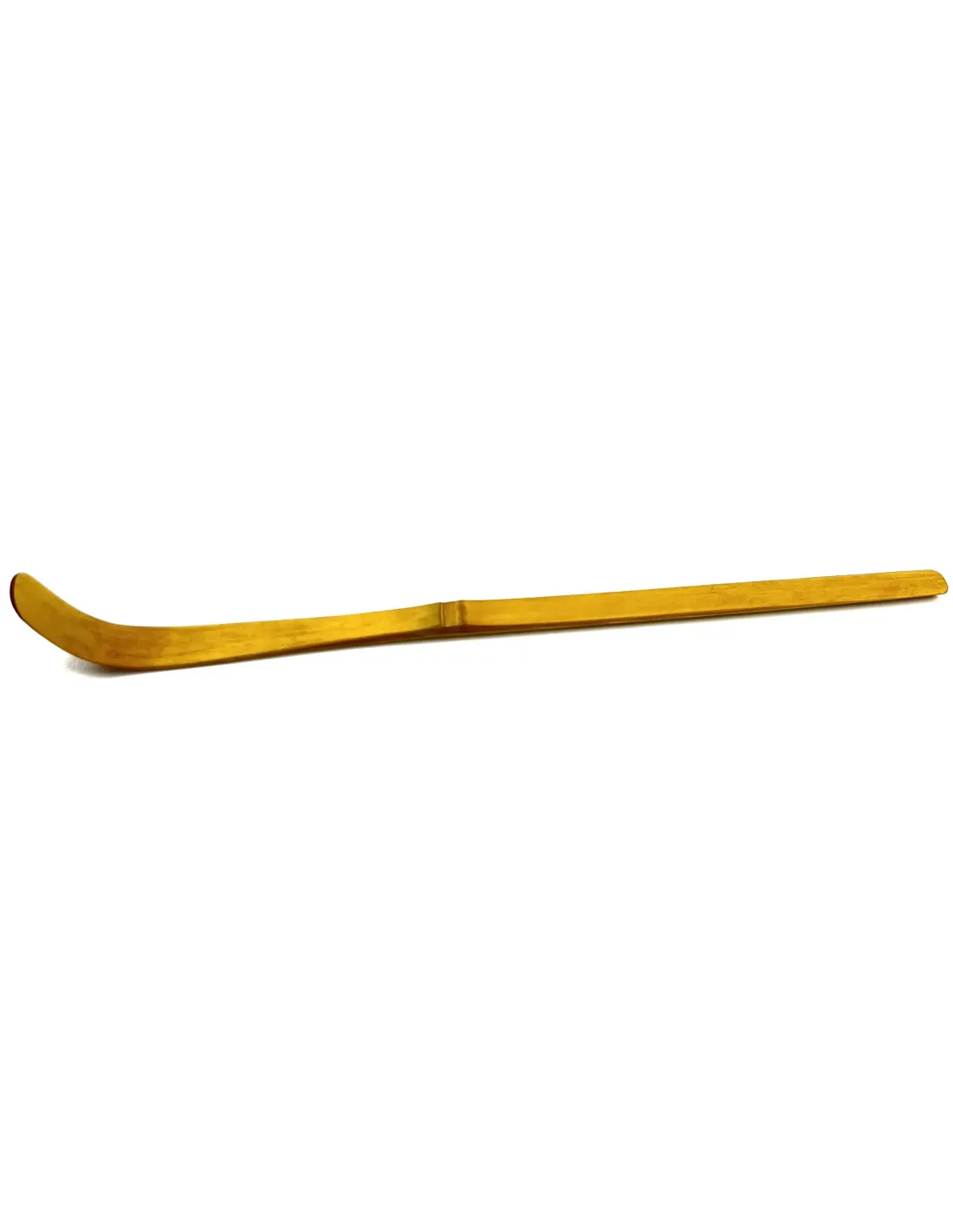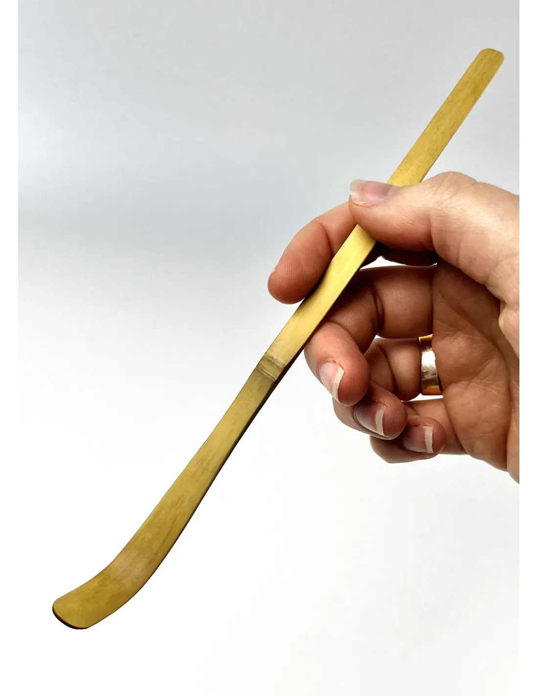 Bambusova žlička za čaj matcha iz kafije, znana tudi kot"chashaku", je tradicionalno orodje, ki se uporablja pri pripravi čaja matcha. Izdelana je iz fino izdelanega bambusa in se uporablja za natančno odmerjanje količine čaja v prahu. Njena elegantna, ukrivljena oblika omogoča enostavno zajemanje matche neposredno iz posode, kar zagotavlja pristno izkušnjo čajnega obreda. To orodje ni le praktično, temveč tudi estetsko usklajeno s tradicionalnimi čajnimi obredi in kulturo.