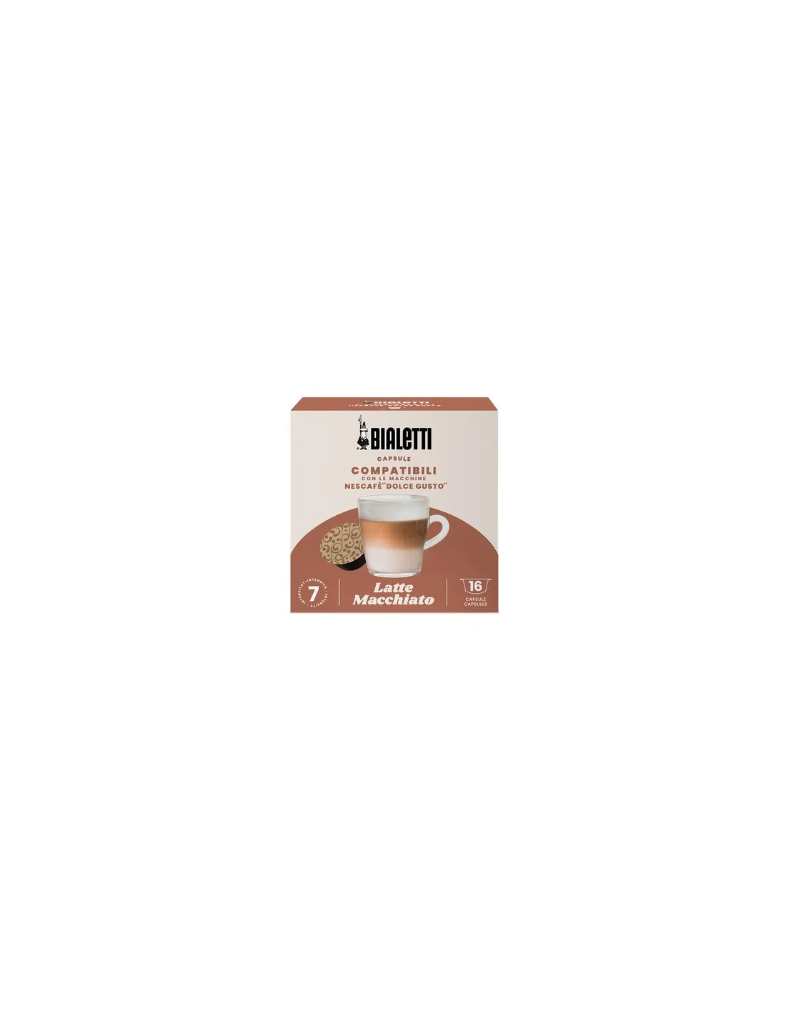 Bialetti predstavlja novo paleto združljivih kapsul, s katerimi lahko ponovno odkrijete kakovost in tradicijo kave Bialetti ter okus pravega italijanskega espressa. Kapsule Bialetti Dolce Gusto® Latte Macchiato vsebujejo gladko in svetlo kavo, ki se odlično zlije z gladkostjo mleka. Odlično za jutranjo poslastico ali brezskrben odmor za kavo!