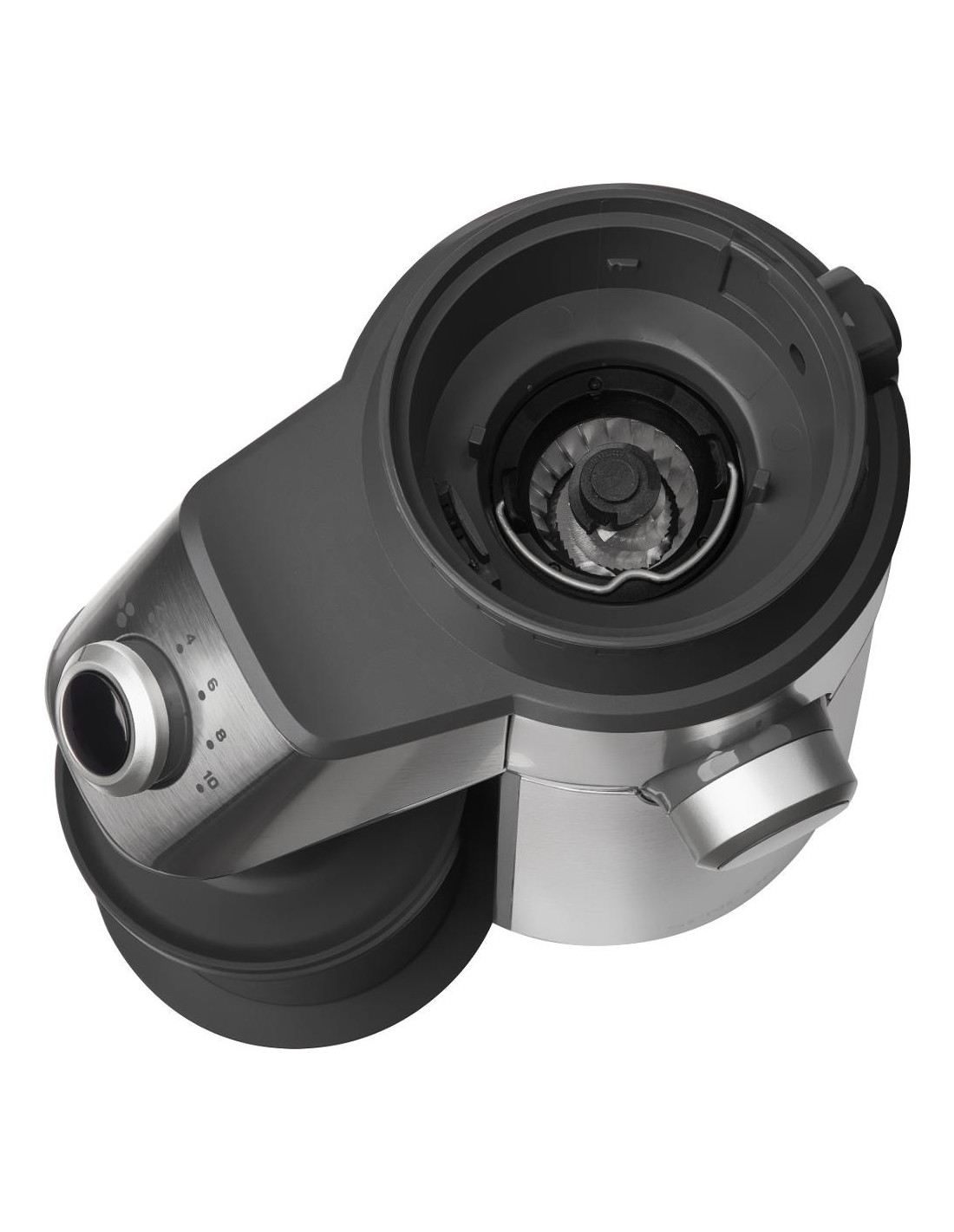 Mlinček ima vrtljiv izbirnik porcij za 2-10 skodelic in funkcijo samodejnega izklopa, ko je mletje končano. Zaradi planetnega menjalnika je njegovo delovanje izjemno tiho in gladko, kar boste še posebej cenili pri jutranjem kuhanju kave.