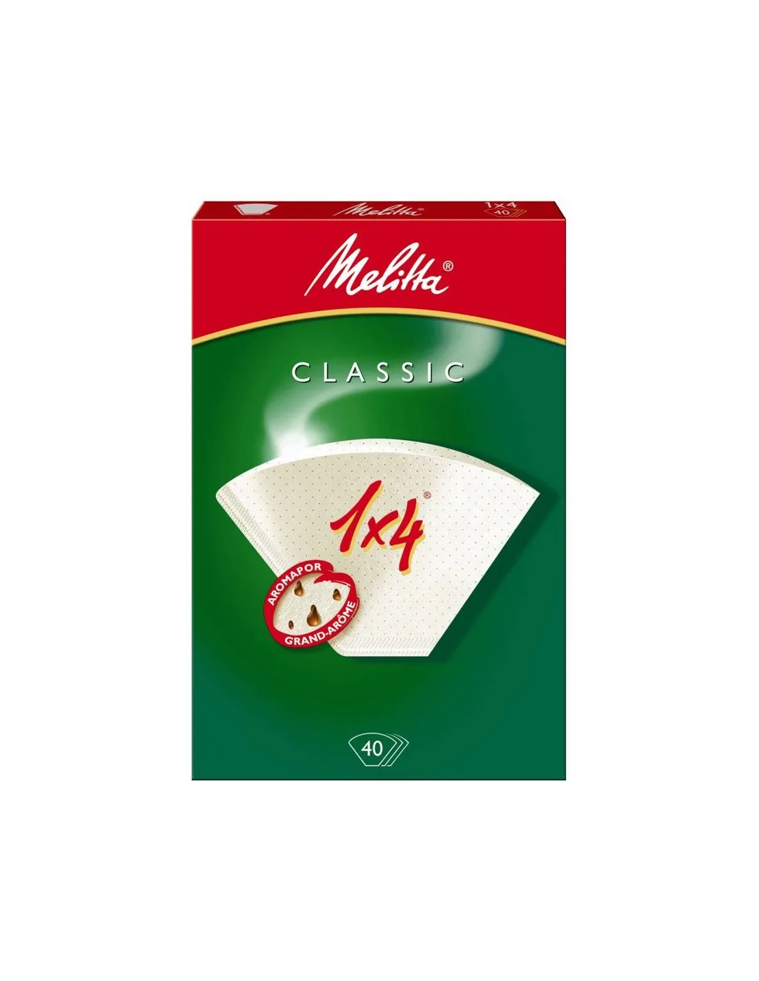 Papirnati filtri Melitta® Original v velikosti 1x4, ki razvijejo optimalen okus filtrirane kave. Vsebina paketa: 40 kosov