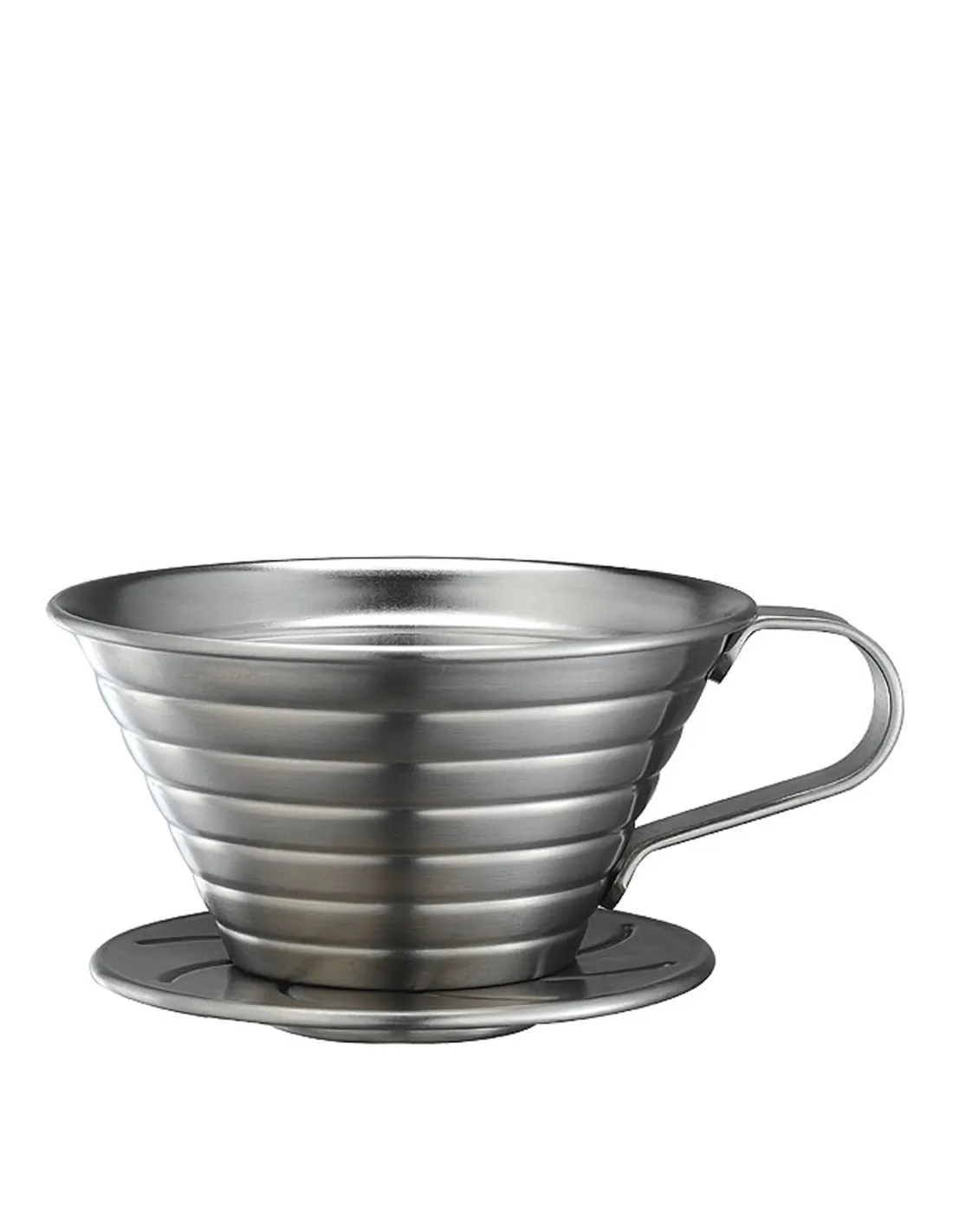 Ploski filter Kalita v slogu vala iz podjetja Tiamo, izdelan iz robustnega nerjavnega jekla.