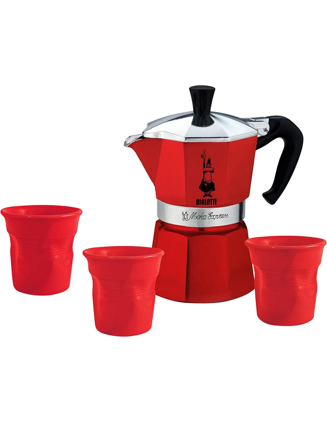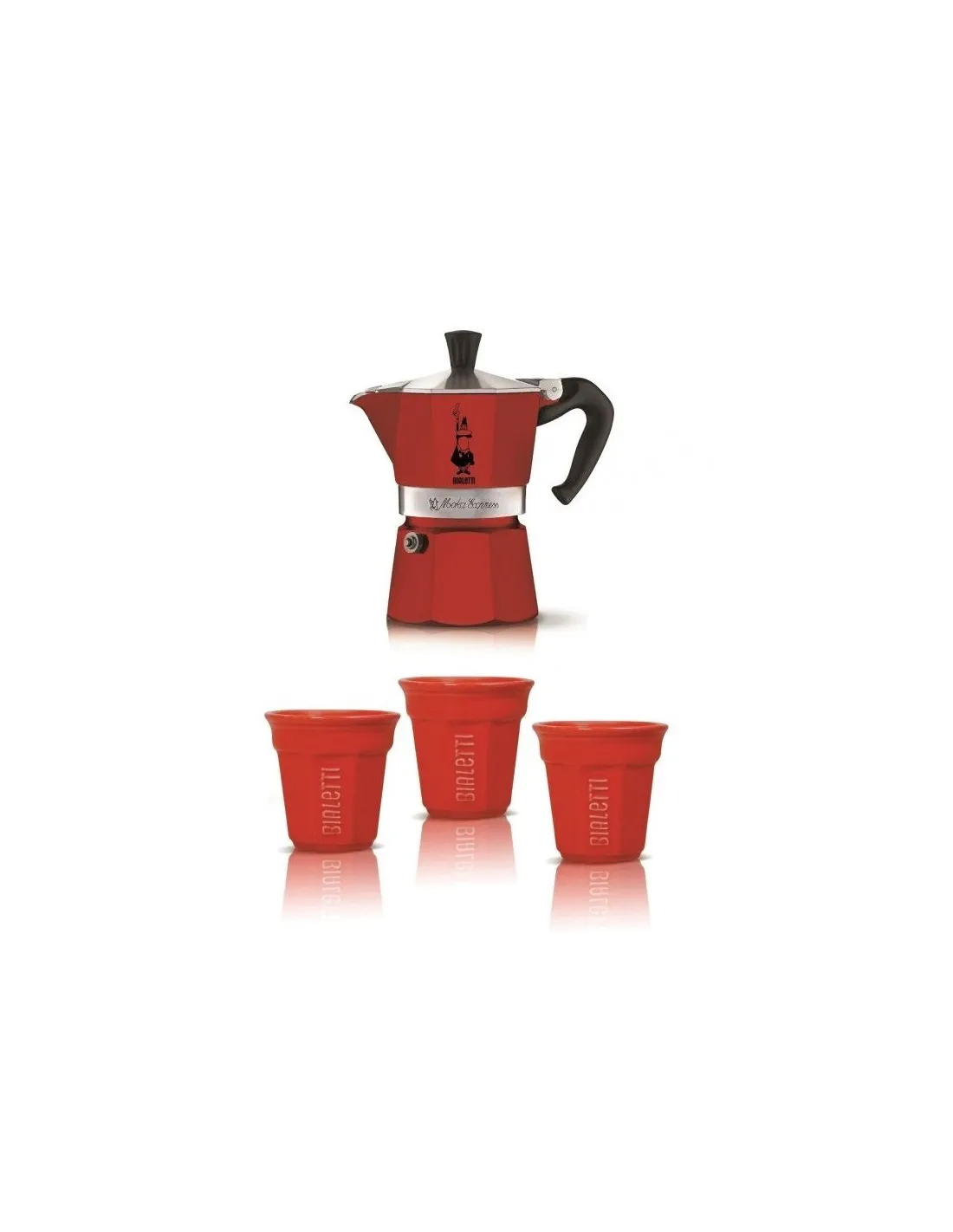 Darilni set Bialetti moka express 3 porcije + 3 skodelice, rdeča