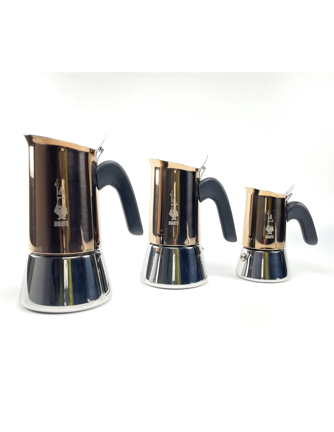 V celoti nerjaveč luksuzni moka lonček Bialetti Venus Copper italijanskega podjetja Bialetti za tradicionalno pripravo 2 skodelic močnejše kave (približno 85 ml). Ni primeren za indukcijo!
