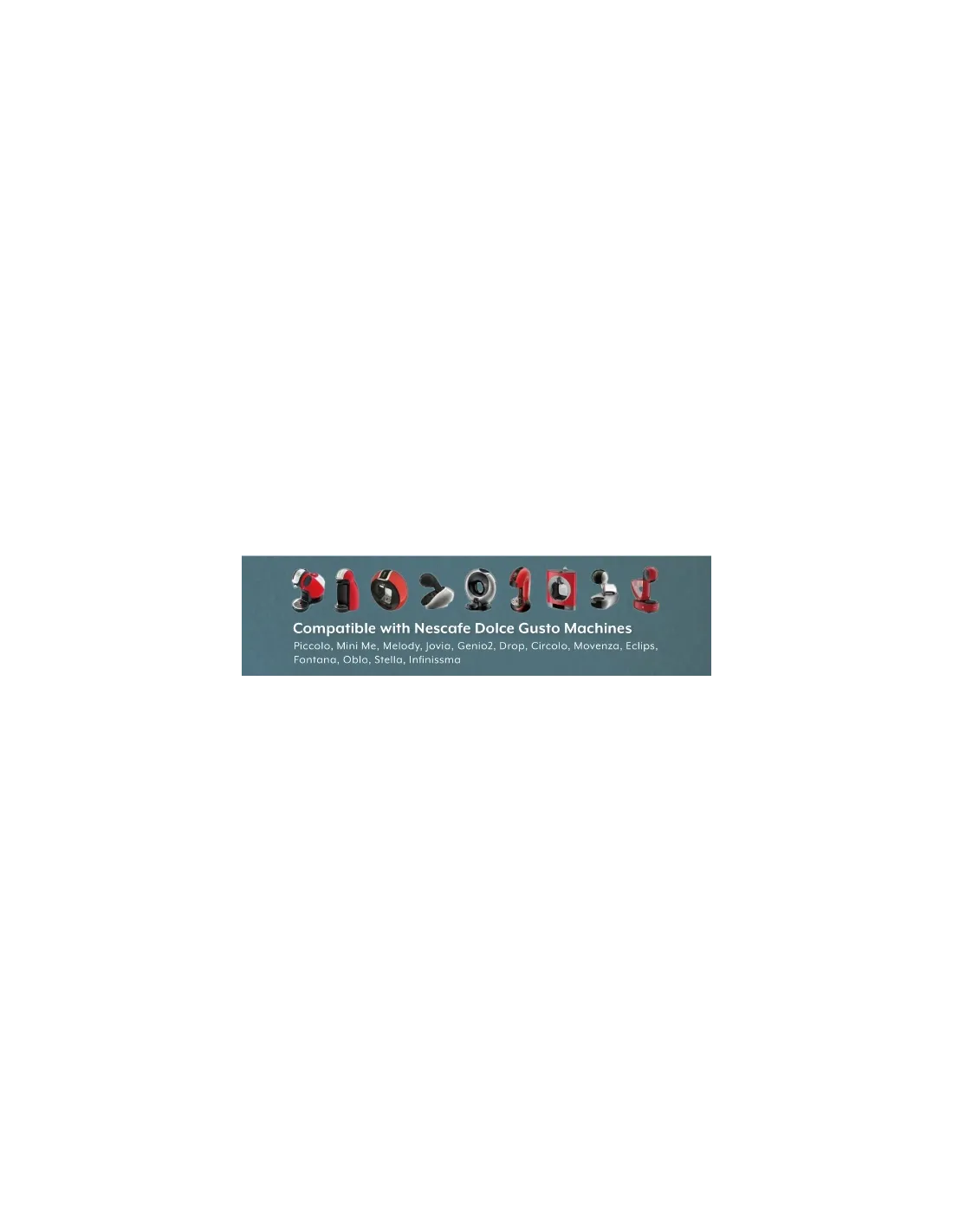 Kapsule Sealpod so združljive z večino kavnih avtomatov Nescafè® Dolce Gusto® (Piccolo, Mini Me, Melody, Jovia, Genio2, Drop, Circolo, Movenza, Eclips, Fontana, Oblo, Stella, Infinissma), ne delujejo z napravami Dolce Gusto® LUMIO, COLORS in VertuoLine™.