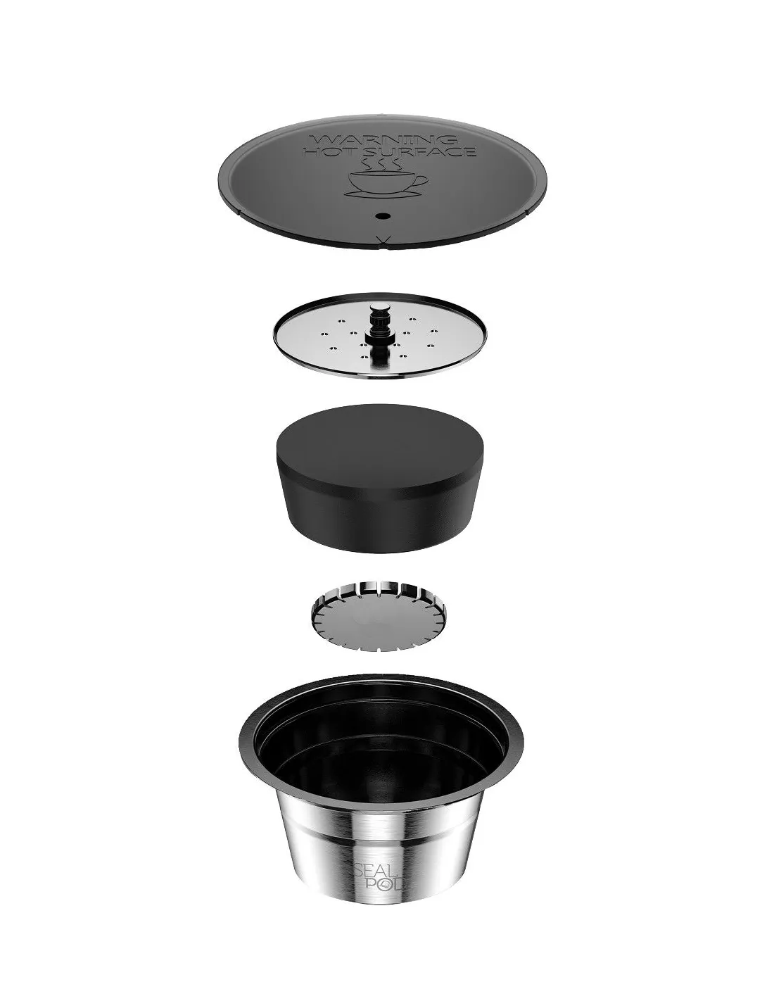 Vsak paket vsebuje: 1x Sealpod kapsulo iz nerjavečega jekla, 1x filter iz nerjavečega jekla, 1x pokrov iz nerjavečega jekla, 1x silikonski pokrov.