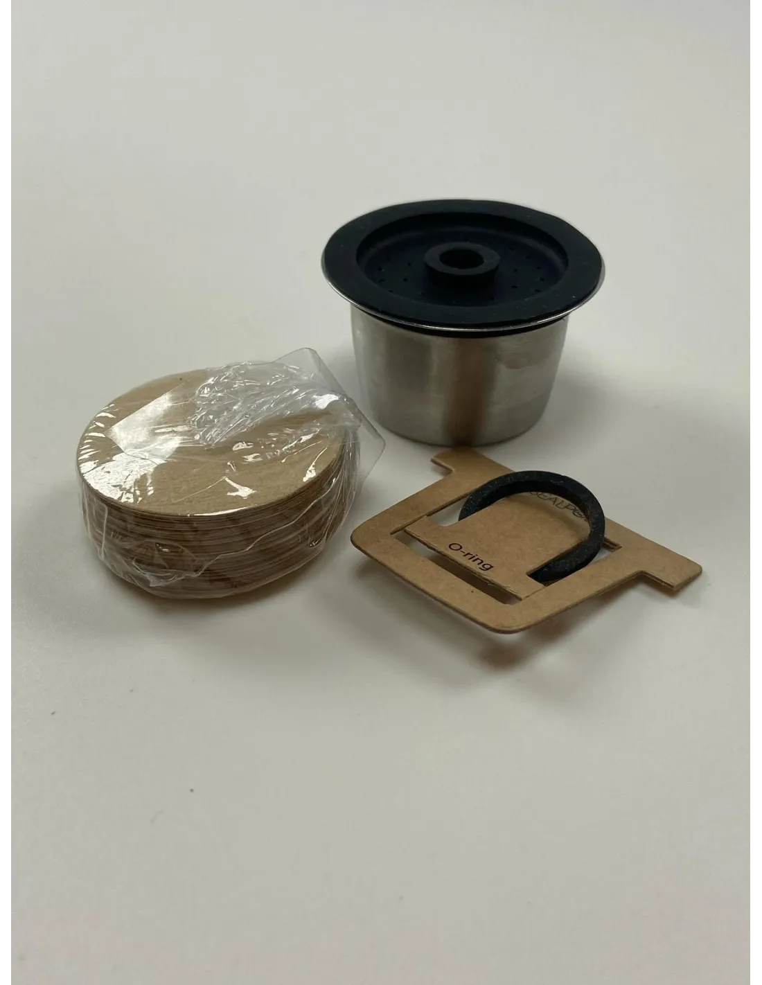 Vsako pakiranje vsebuje: 1x kapsula Sealpod iz nerjavečega jekla, 100x papirnati filter