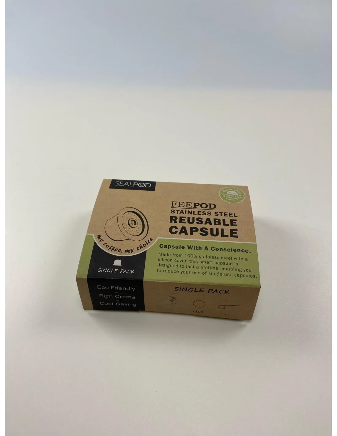 V primerjavi s plastičnimi kapsulami za ponovno polnjenje ima kapsula Sealpod iz nerjavečega jekla neomejen rok trajanja. Kapsulo lahko torej polnite v nedogled, saj se na noben način ne bo pokvarila. Kapsula je zaprta s silikonskim pokrovčkom, ki zaradi spremenjene luknje za iglo kavnega aparata prav tako ni omejen s številom uporab. S kapsulo za ponovno polnjenje boste zagotovo prihranili denar.