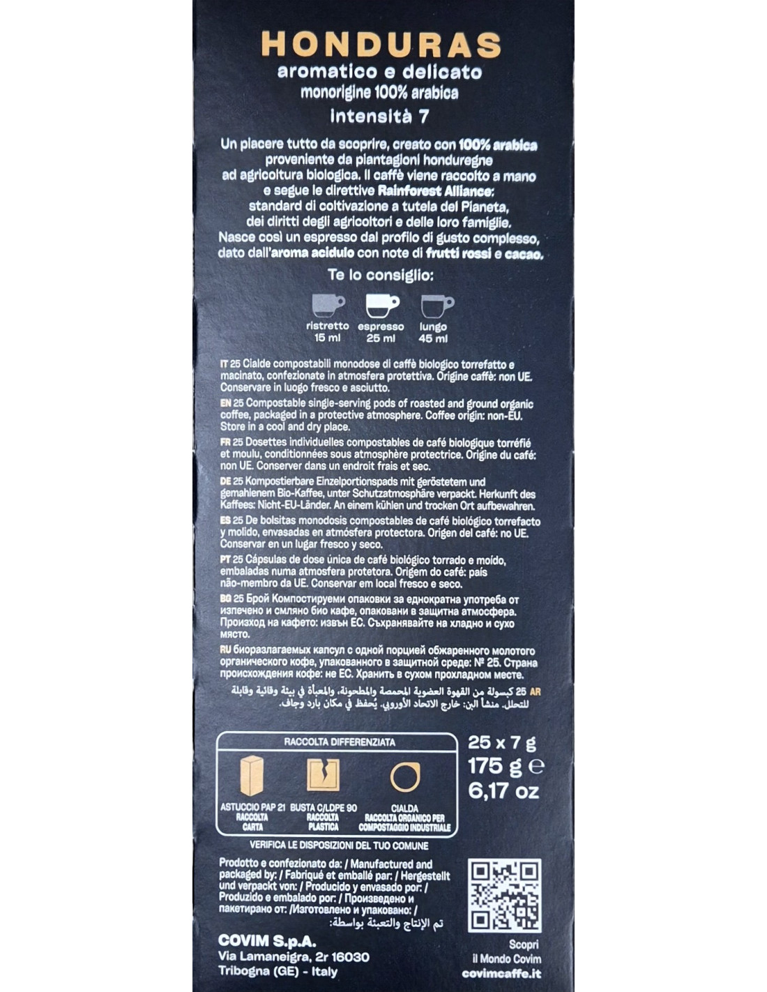 E.S.E. podi Covim Honduras 100% Arabica, 25 obrokov - hiter espresso z nežno aromo, čokoladnimi in sadnimi notami.