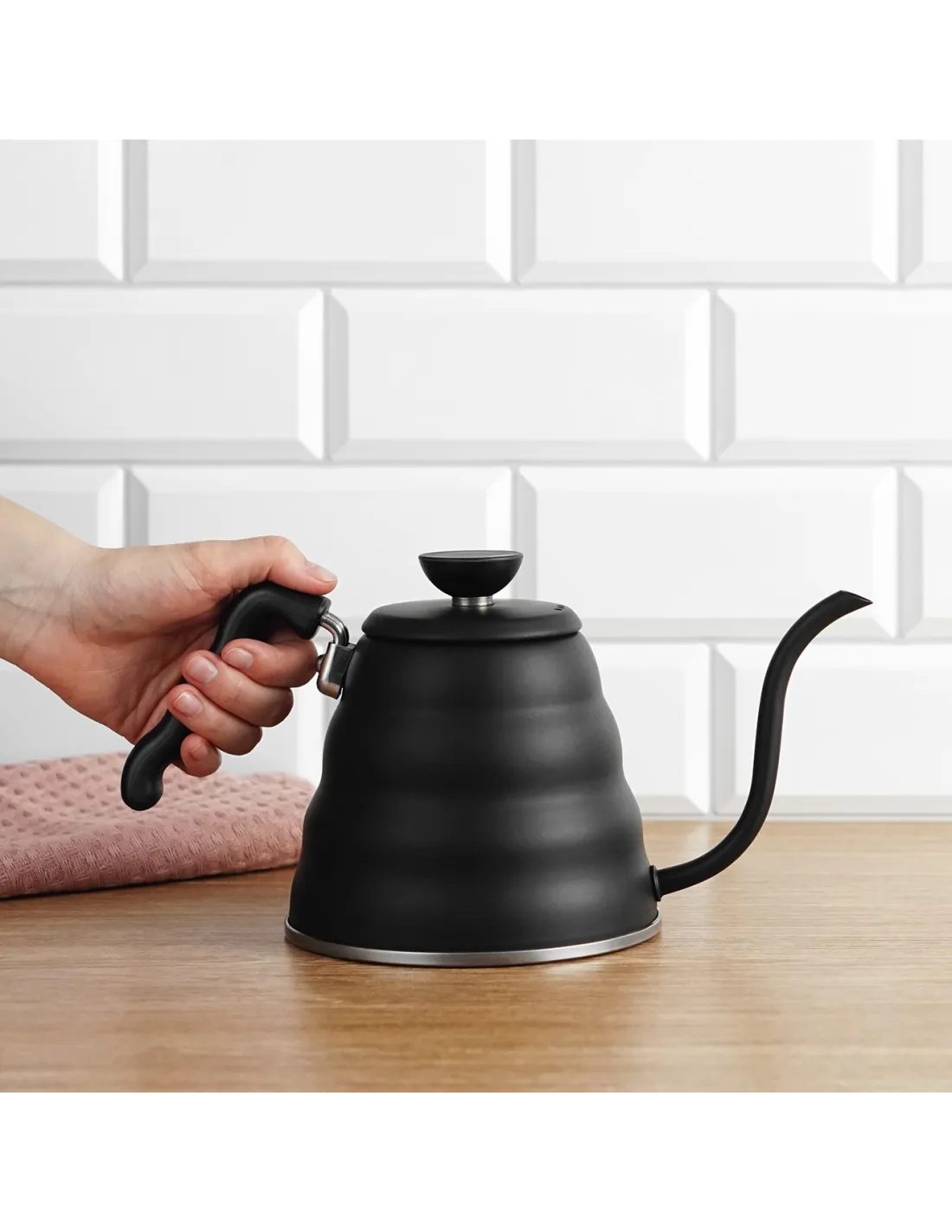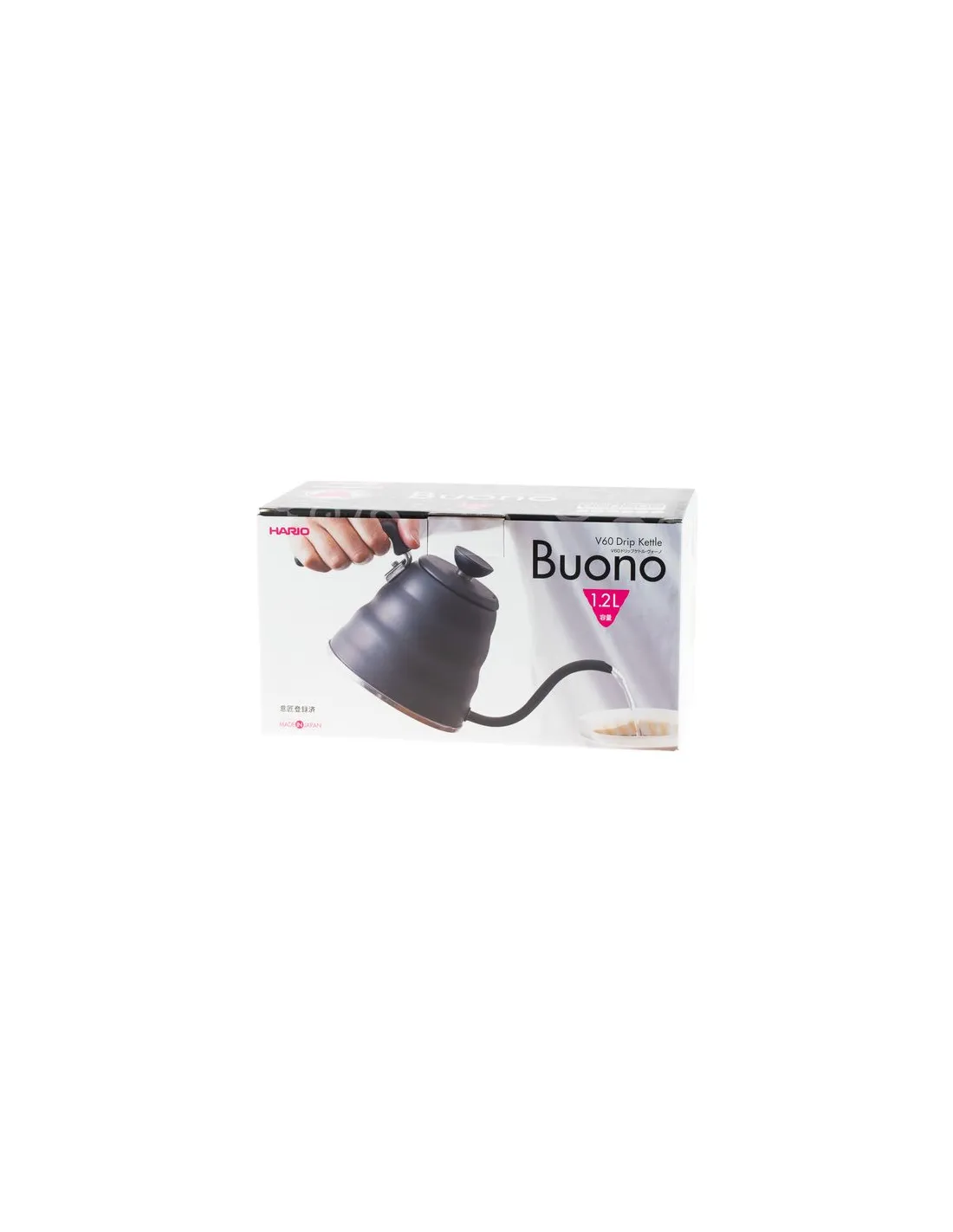 Hario Buono 1,2lvrč za vodo, posebej zasnovan za pripravo kave s kapalnikom. Iz nerjavečega jekla, primeren tudi za indukcijsko ploščo. Barva: črna