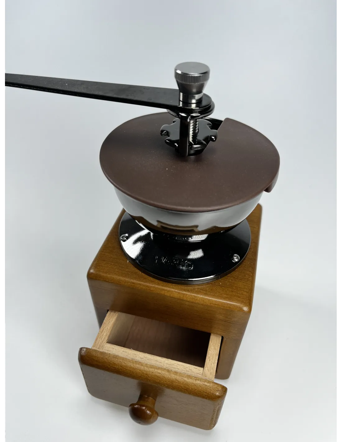 Mlinček Hario MM-2 je popolna mešanica tradicionalnega sloga in elegance, značilne za japonsko blagovno znamko Hario. Na prvi pogled vam bo všeč kombinacija masivnega lesenega ohišja, temnega lijaka iz nerjavečega jekla in ročaja, ki je kombinacija nerjavečega jekla in lesa.