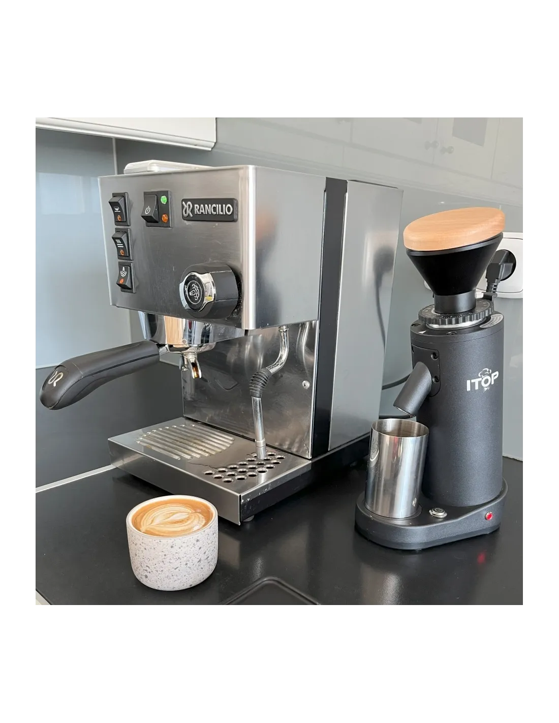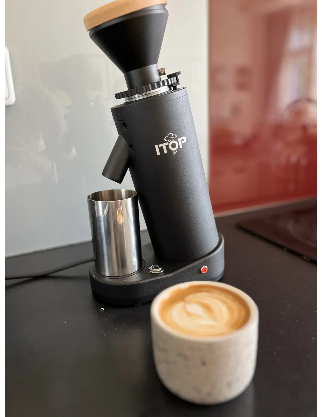 Majhen, dizajnerski električni mlinček za kavo Kaffia Itop Zero je primeren tudi za pripravo espressa s tehnologijo ničelnega zadrževanja - v njem se kava ne zadržuje.
