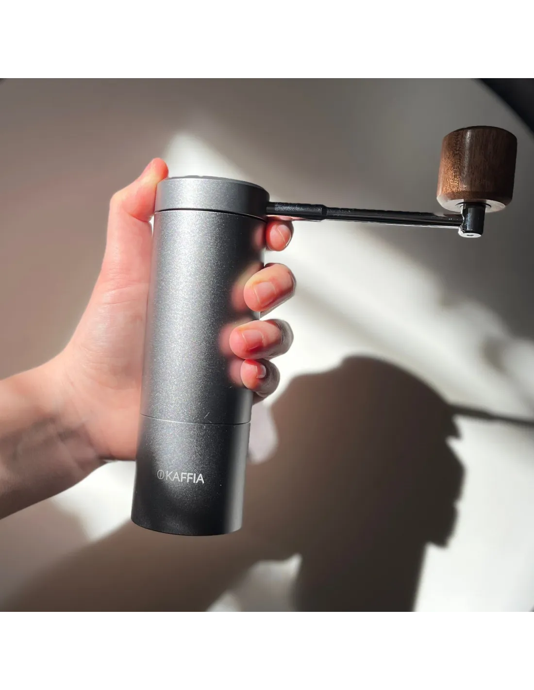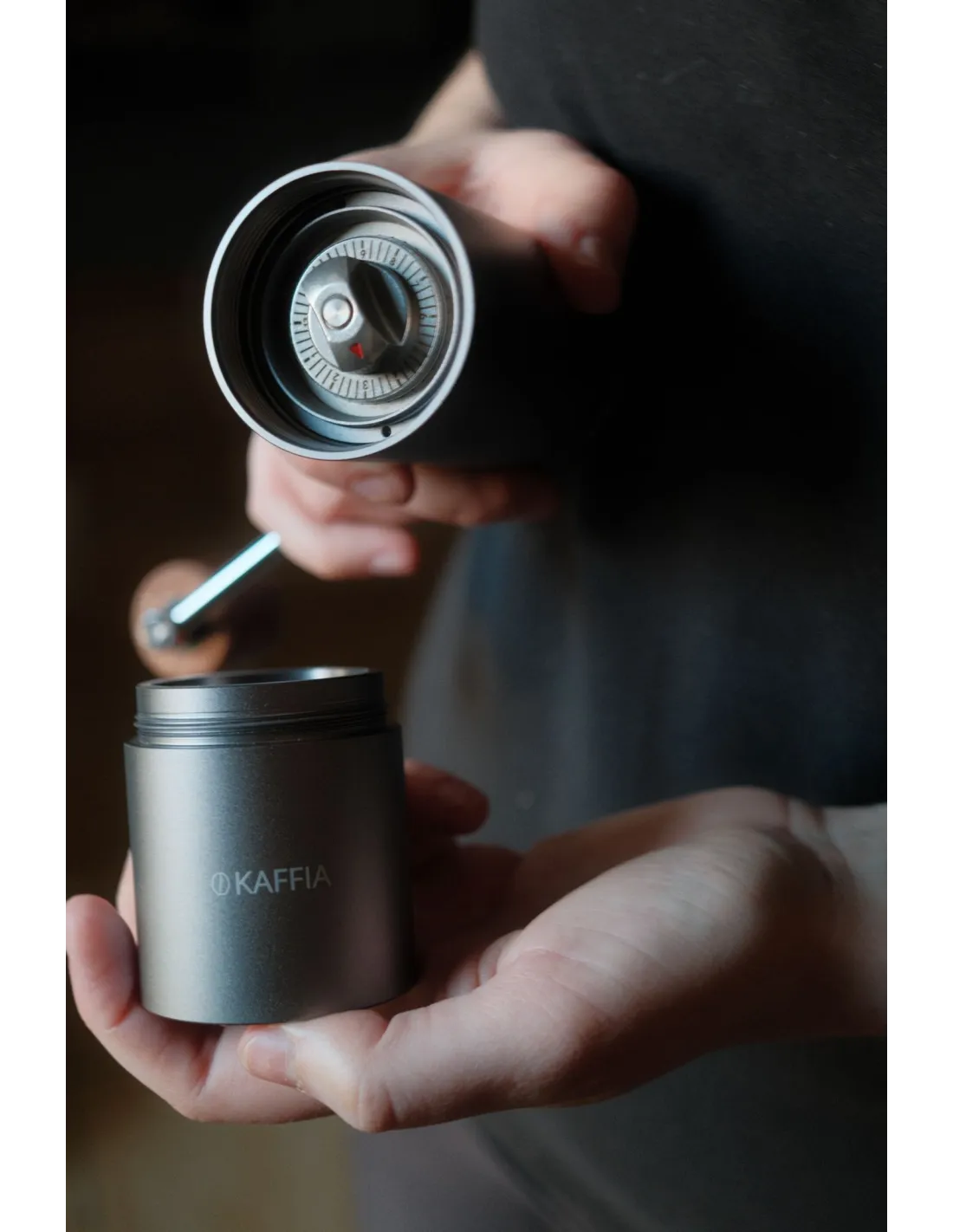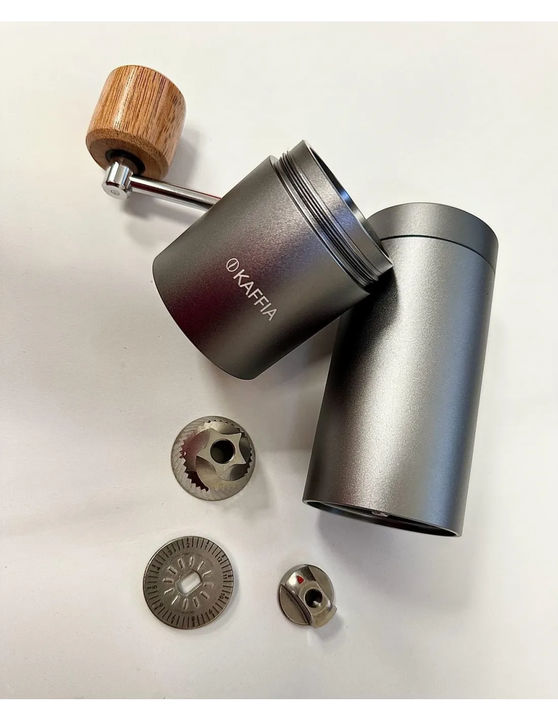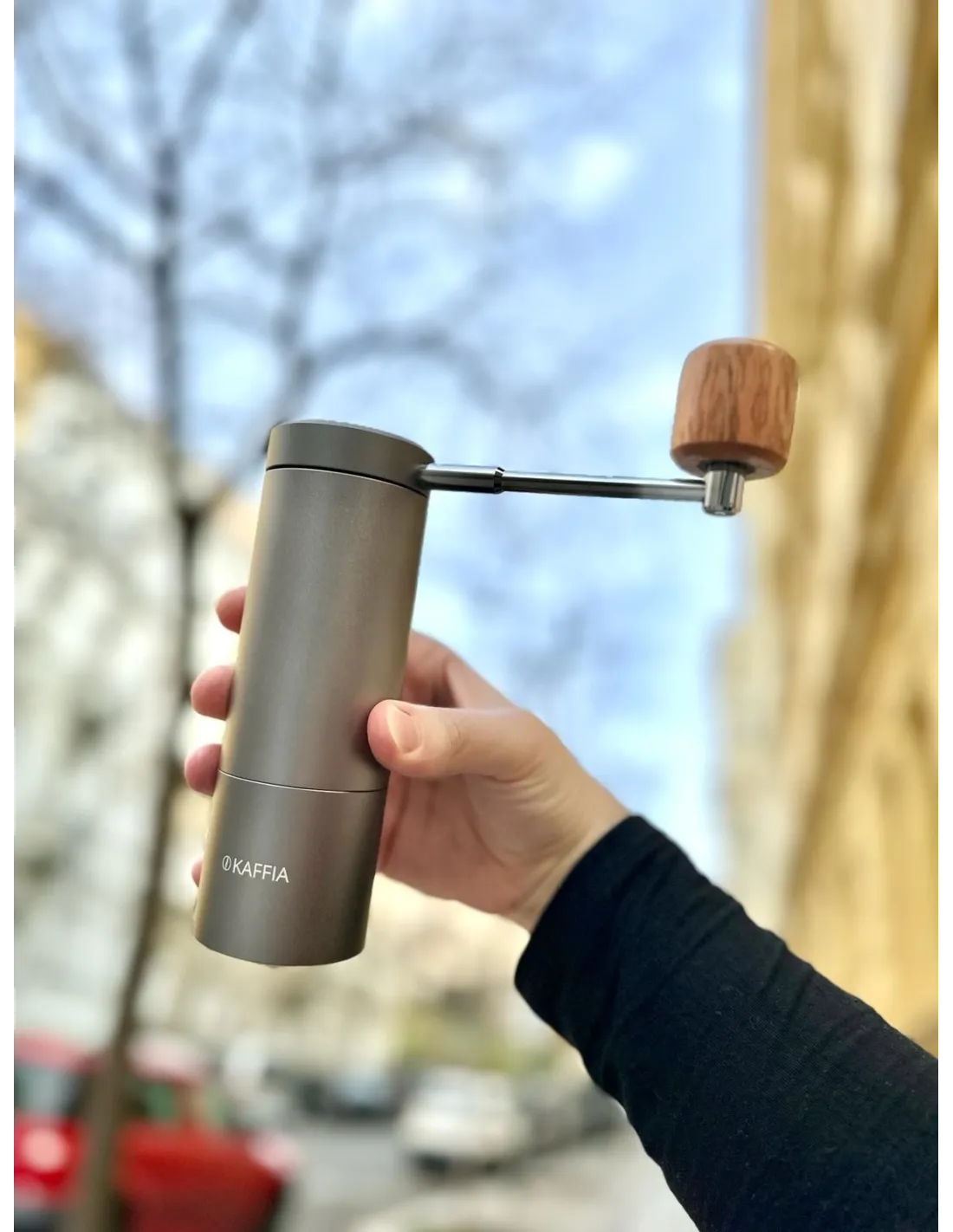 Natančno izdelan aluminijasti mlinček Kaffia Barista X z jeklenimi brusnimi kamni in ležaji, ki konkurira blagovnim znamkam, kot je Timemore, vendar je za polovico cenejši .