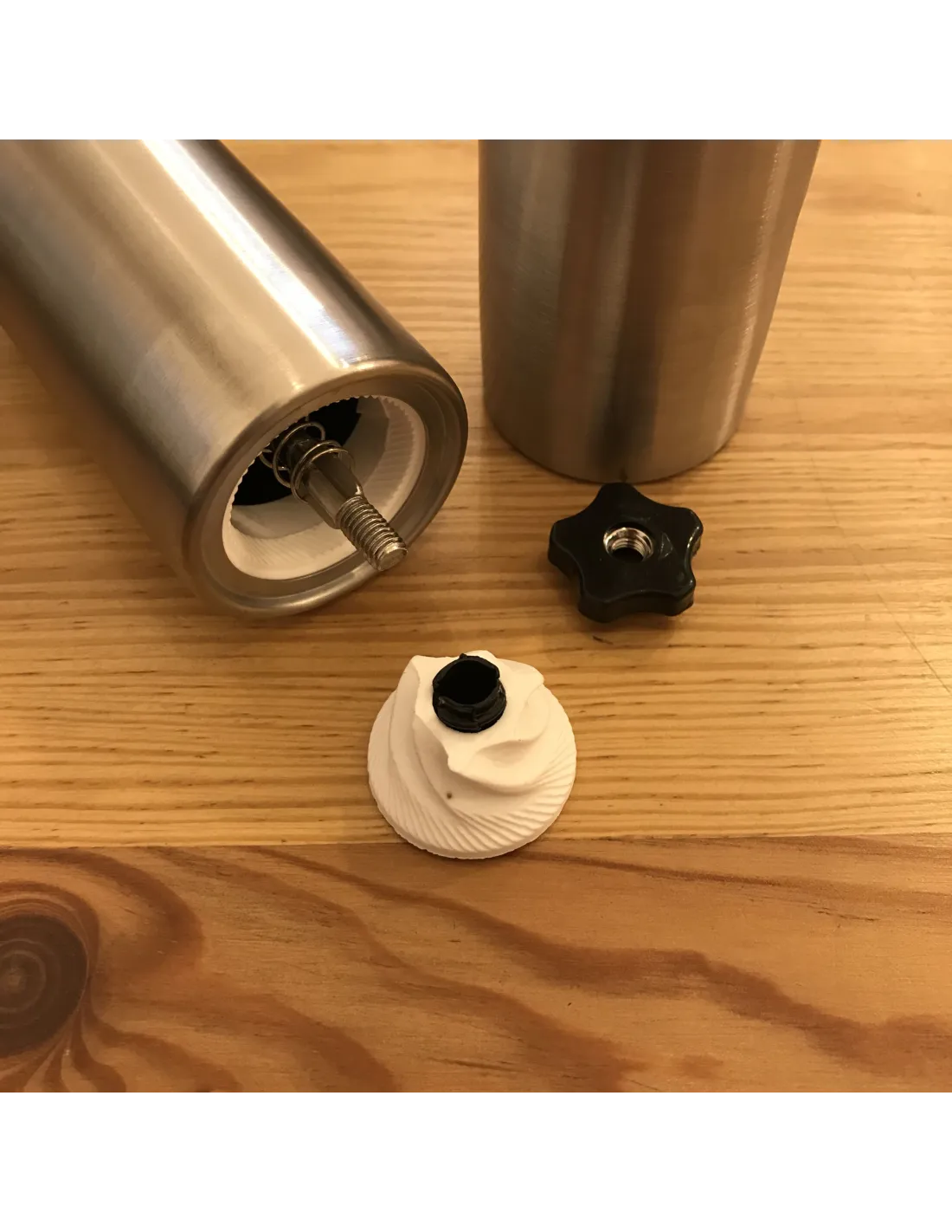 Kaffia Tall ima celotno telo iz nerjavečega jekla. Tako je idealna izbira na primer za popotnike . Mlinček je majhen, kompakten in nezlomljiv.