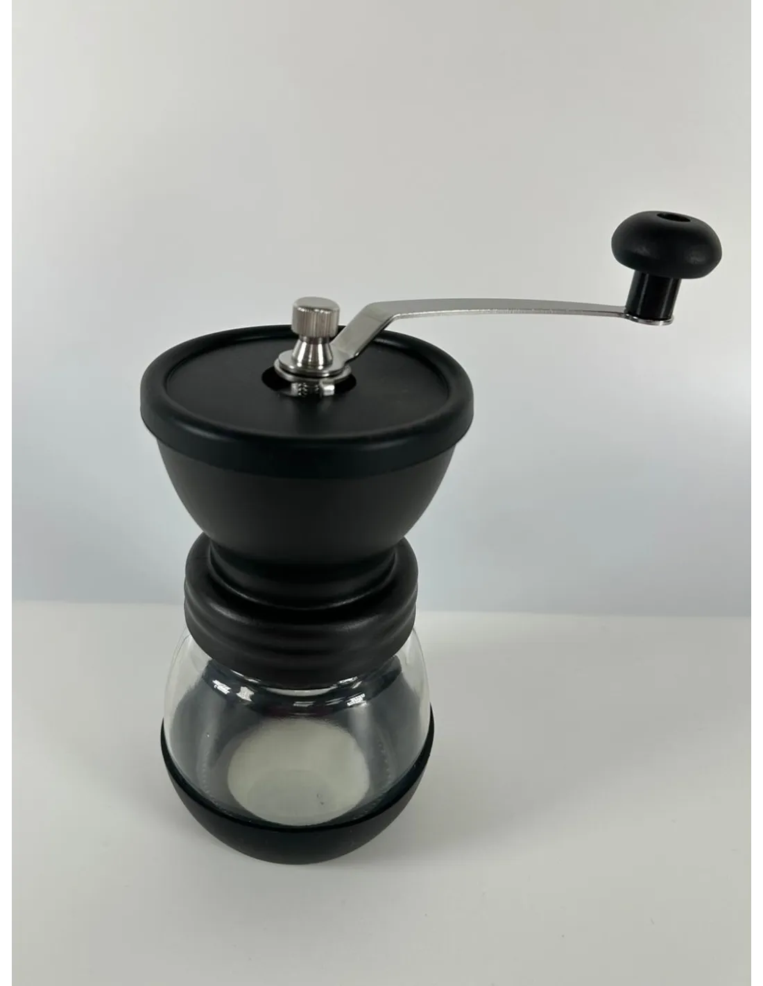 Kaffia Standardni ročni mlinček s keramičnimi mlinskimi kamni, enostavno nastavljivo grobostjo mletja in prostorno stekleno posodo za mleto kavo.