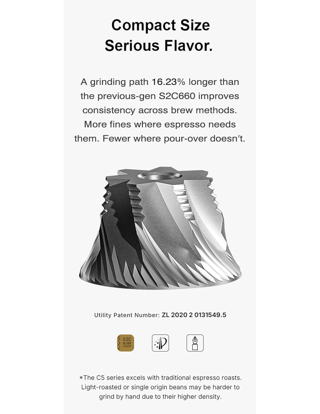 Ročni brusilnik Timemore C5 Pro Black iz nove generacije serije C zagotavlja izjemno kombinacijo natančnosti, zmogljivosti in vzdržljivosti. Opremljen je z inovativnimi mlinskimi kamni S2C-042-III s premerom 42 mm, ki omogočajo hitrejše, enakomernejše in stabilnejše mletje kot prejšnji modeli.