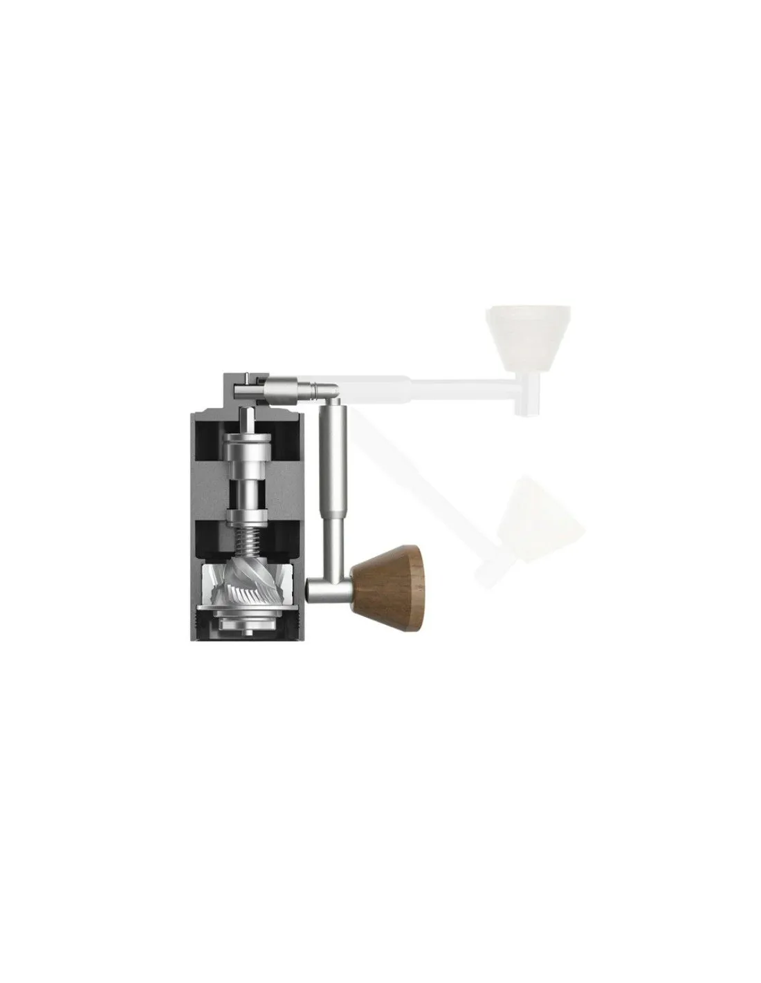 Mlinček poudarja tudi kompaktno obliko , zato ima edinstven zložljiv ročaj. Popotniki bodo zagotovo cenili velikost mlinčka. Meri le 10 cm in je zahvaljujoč aluminiju tudi zelo lahek . Modelirana struktura omogoča enostaven oprijem pri brušenju, ročaj je izdelan iz lepega in trpežnega oreha.