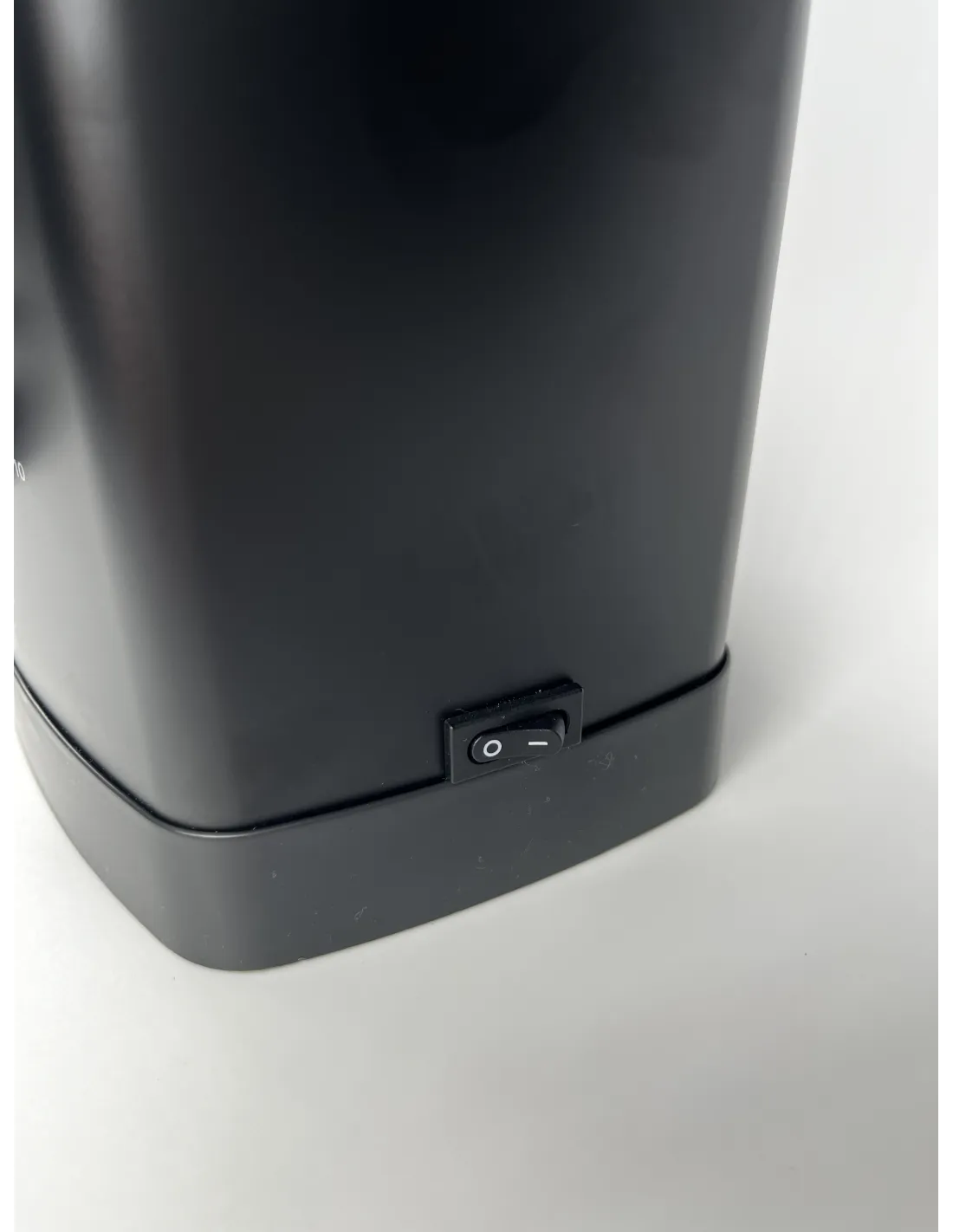 Zdaj v novem elegantnem črnem dizajnu! Ta nova različica je opremljena z nadgrajenim motorjem na enosmerni tok za tišje in natančnejše delovanje mlinčka. Ima zaščito pred zatikanjem kave v mlinčku (preobremenitev motorja), kar se je pri prejšnji različici lahko zgodilo zelo redko.