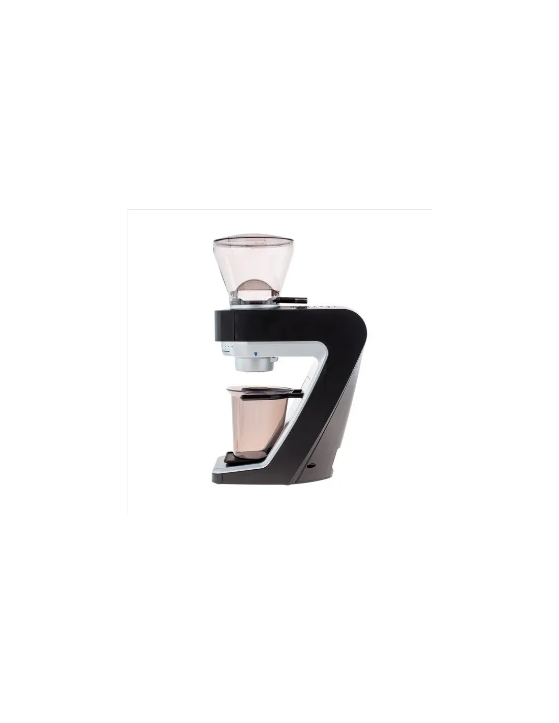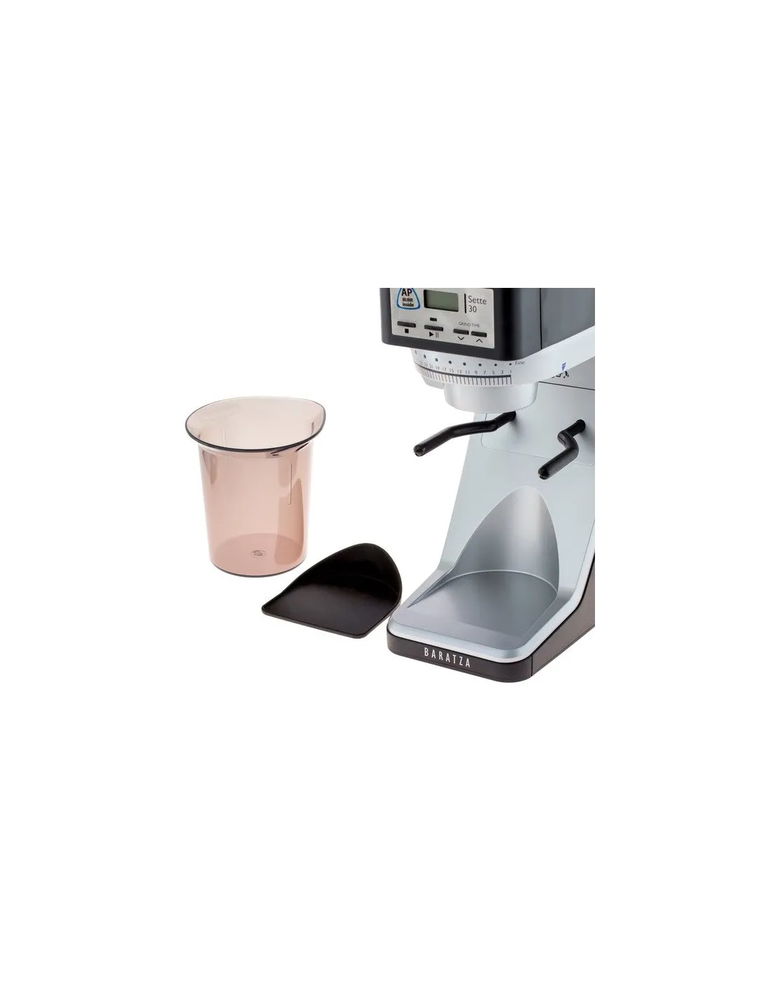 Mlinček ima antistatično posodo za mleto kavo (160 g) in plastično držalo, katerega ročice lahko popolnoma odstranite ali pa jih prestavite tako, da držijo portafilter. (Mlinčki Baratza Sette 270 in 270W imajo kovinske roke, ki jih je mogoče prestaviti, poleg tega pa vgrajena kljuka drži zgornje obroče vzvoda). V zalogovnik za zrnca se spravi od 300 do 400 g kave. Zahvaljujoč premični loputi lahko nasipnik odstranite, ne da bi izpraznili vsebino (pri mlinčku Sette 30 AP je ključ za zapiranje nasipnika plastičen).