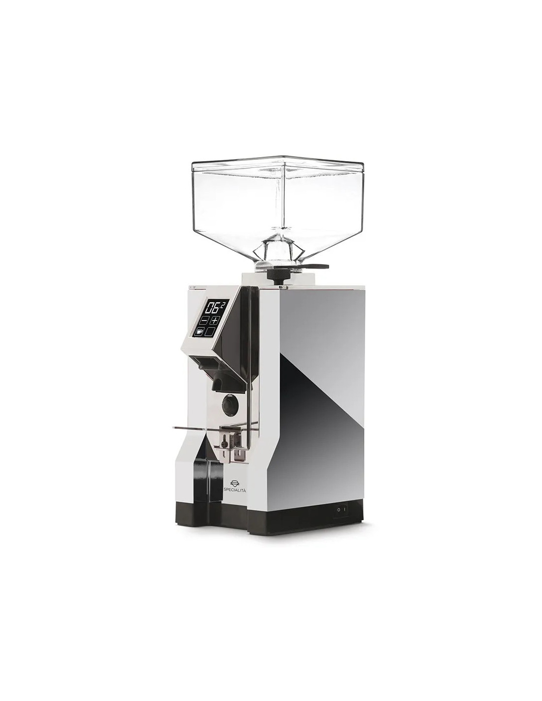 Mlinček Eureka Mignon Specialita CR Chrome je eleganten in zmogljiv model v kromirani izvedbi, kine navdušuje le s svojo obliko, temveč tudi z natančno izdelavo. Ponuja brezstopenjsko nastavljanje grobosti mletja, elektronsko doziranje s časovnikom in intuitiven zaslon na dotik. Seveda ne manjkata niti tiho delovanje in sistem ACE proti grudicam kave in elektrostatiki.