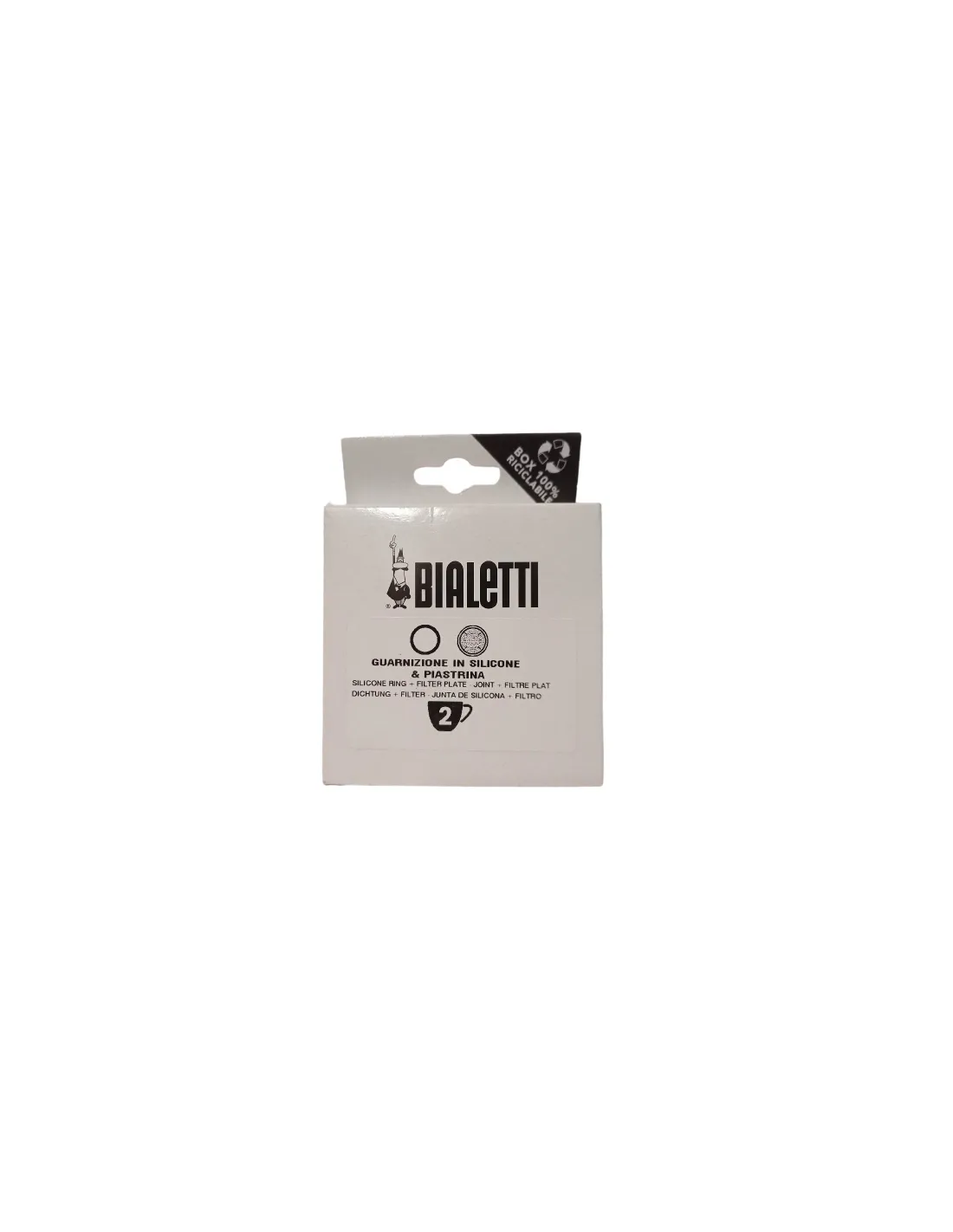Paket vsebuje 1x nadomestno gumijasto tesnilo za aluminijaste čajnike BialettiMukka Expresscappuccino mocha v velikosti 2 skodelic in 1x nadomestno aluminijasto cedilo.