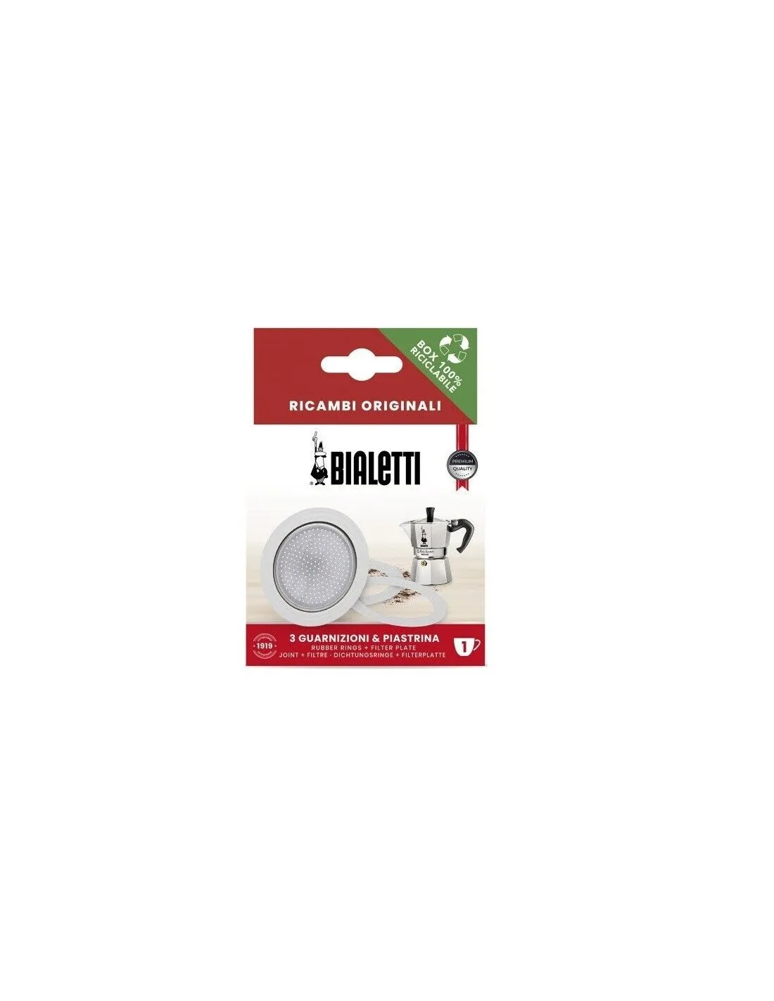 Komplet 3 rezervnih gumijastih tesnil z nadomestnim cedilom za aluminijaste lončke za moko Bialetti za 1 skodelico.