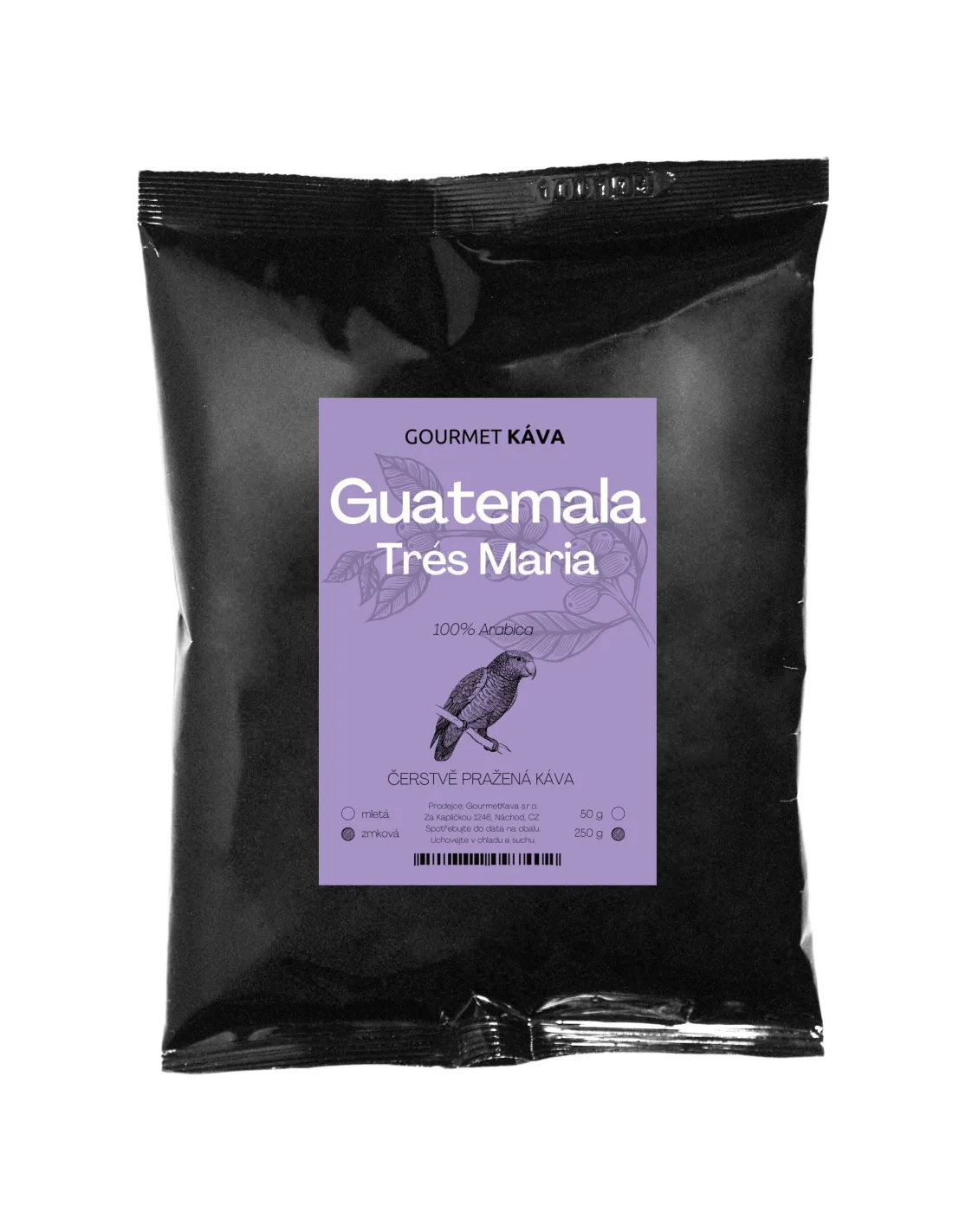 Gvatemalska kava Trés Maria izstopa po popolnem ravnovesju in prijetni sladkosti, ki jo dopolnjuje okus zrelega tropskega sadja.