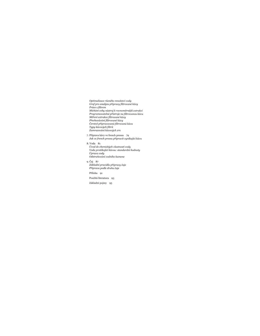 Na 100 straneh Scott opisuje praktične, natančne in z desetletji izkušenj preverjene informacije o pripravi kave v komercialnem in domačem okolju. Avtor obravnava espresso, filter kavo ter vprašanja mletja in vode. Ta knjiga je obvezna oprema za vse, ki se resno ukvarjajo s pripravo kave.