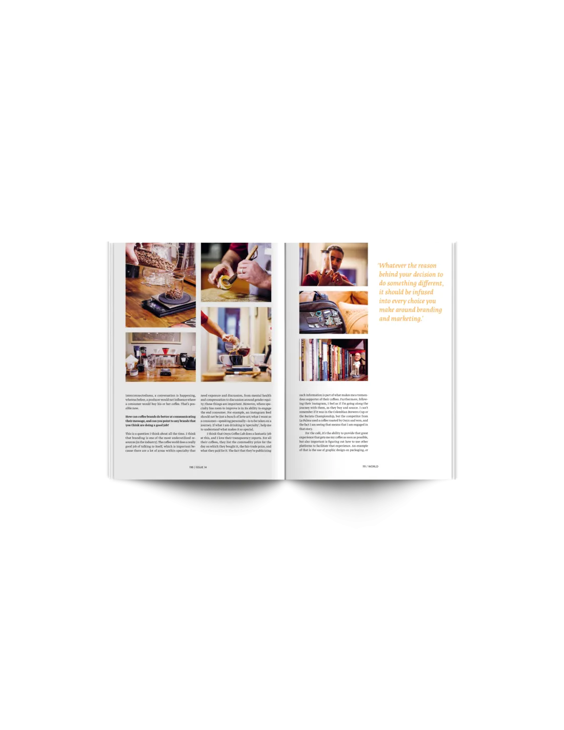 Standardt Revija #14 vsebuje raznoliko paleto zanimivih tem, katerih glavni cilj je premostiti namišljeno vrzel med baristi in strokovnjaki na področju kavo industrijo, navdušenci, pa tudi tistimi, ki son e preprosto preživljajo svoj prosti čas v kavarnah.