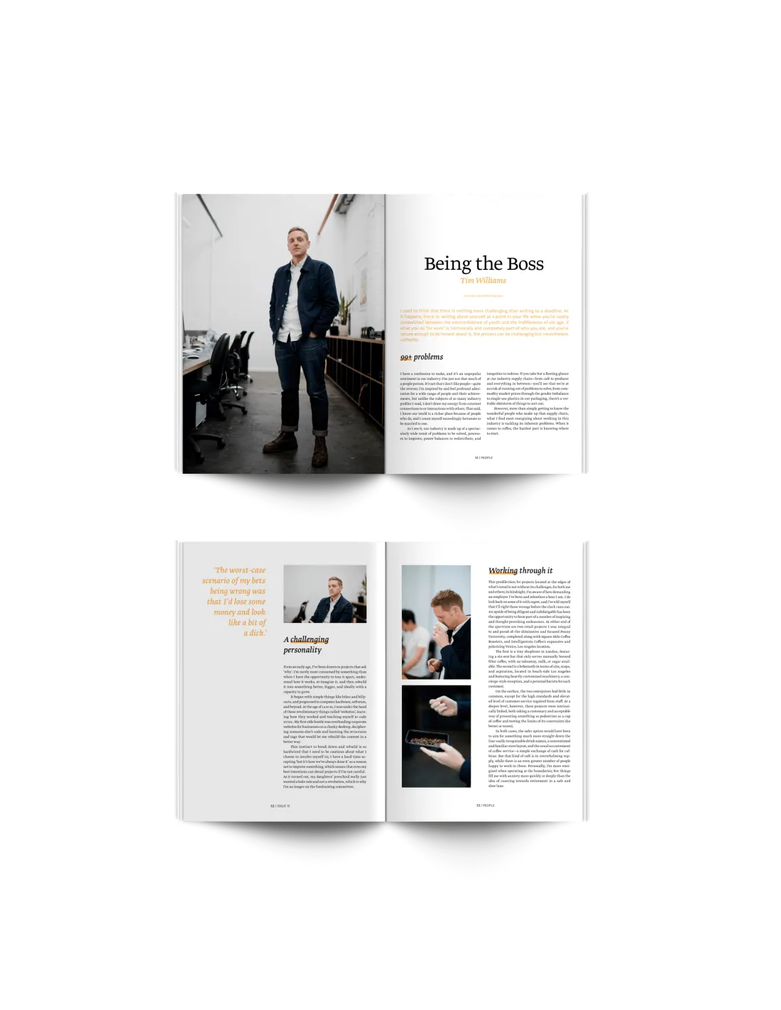 Poglavje "Ljudje" je polno zgodb o ljudeh, ki sestavljajo kavno industrijo - od intervjujev s svetovno znanima pražarjema Stephenom Leightonom in Joanno Alm do pripovedi o življenju v New Yorku in čudovitih spominov Tima Williamsa na življenjske lekcije.