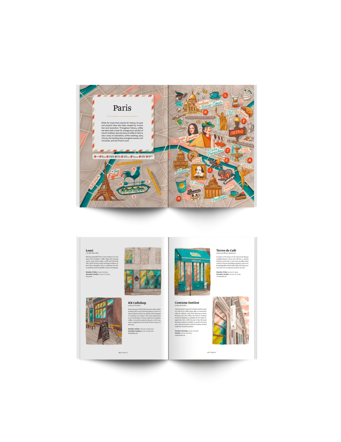 V poglavju "Svet" se pogovarjamo s knjižnim zgodovinarjem Gerijem Della Roccom de Candio o njegovi nedavni razstavi o tiskarski revoluciji v 15. stoletju. Nato si ogledamo čudno povezavo med kavo in stand-up komedijo ter se ob tem naučimo nekaj šal. Nato se bomo preselili v Pariz in se sprehodili skozi politično in kulturno zgodovino francoske prestolnice - vse skozi oči kave, vse skupaj pa zaključili z zgodbo o samoti, ustvarjanju in kavi.