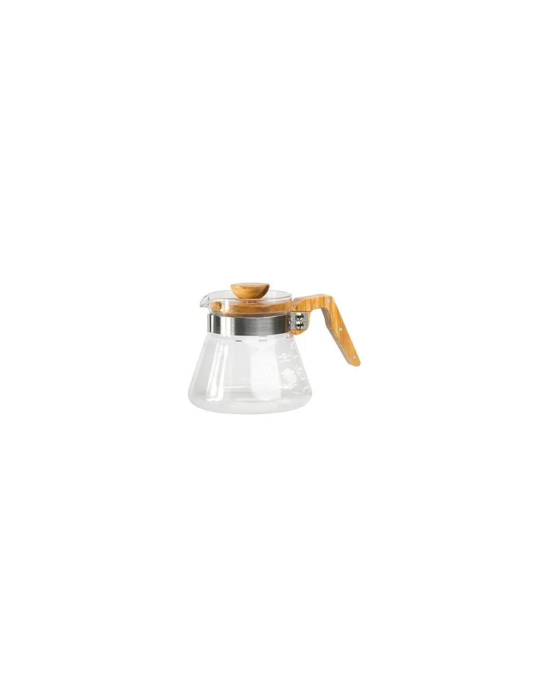 Luksuzni stekleni lonček za kavo z ročajem iz olivnega lesa Hario Range Server 600 ml za profesionalno serviranje sveže kave.