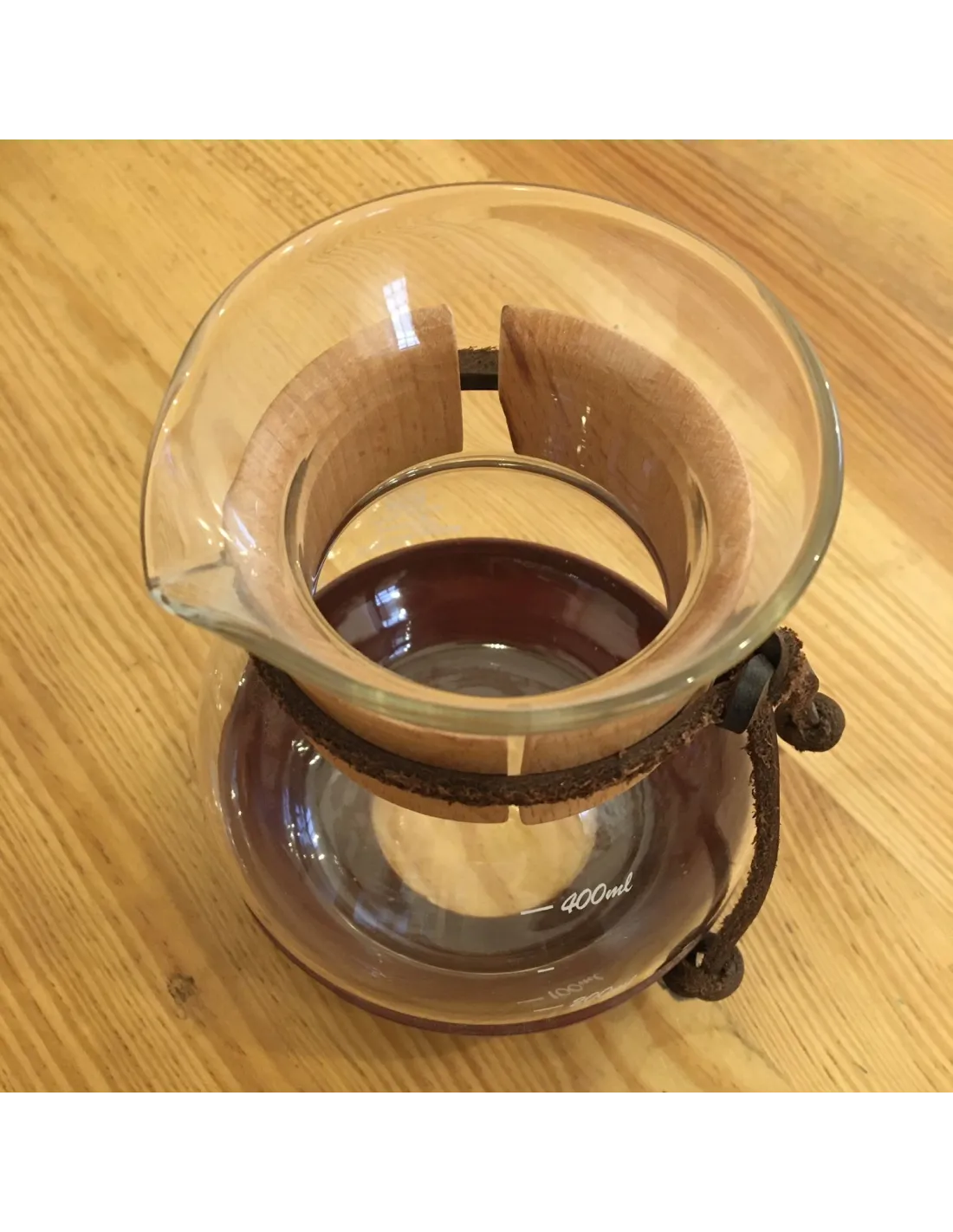 Elegantna steklena posoda za kavo Kaffia Bamboo Server je popolnoma združljiva z vsemi kavnimi aparati Hario serije V60. Preprosto postavite kapalko na lonček in pustite, da se kava filtrira. Na lončku prevladuje čudovit lesen korzet, ki je povezan z usnjenim pasom.