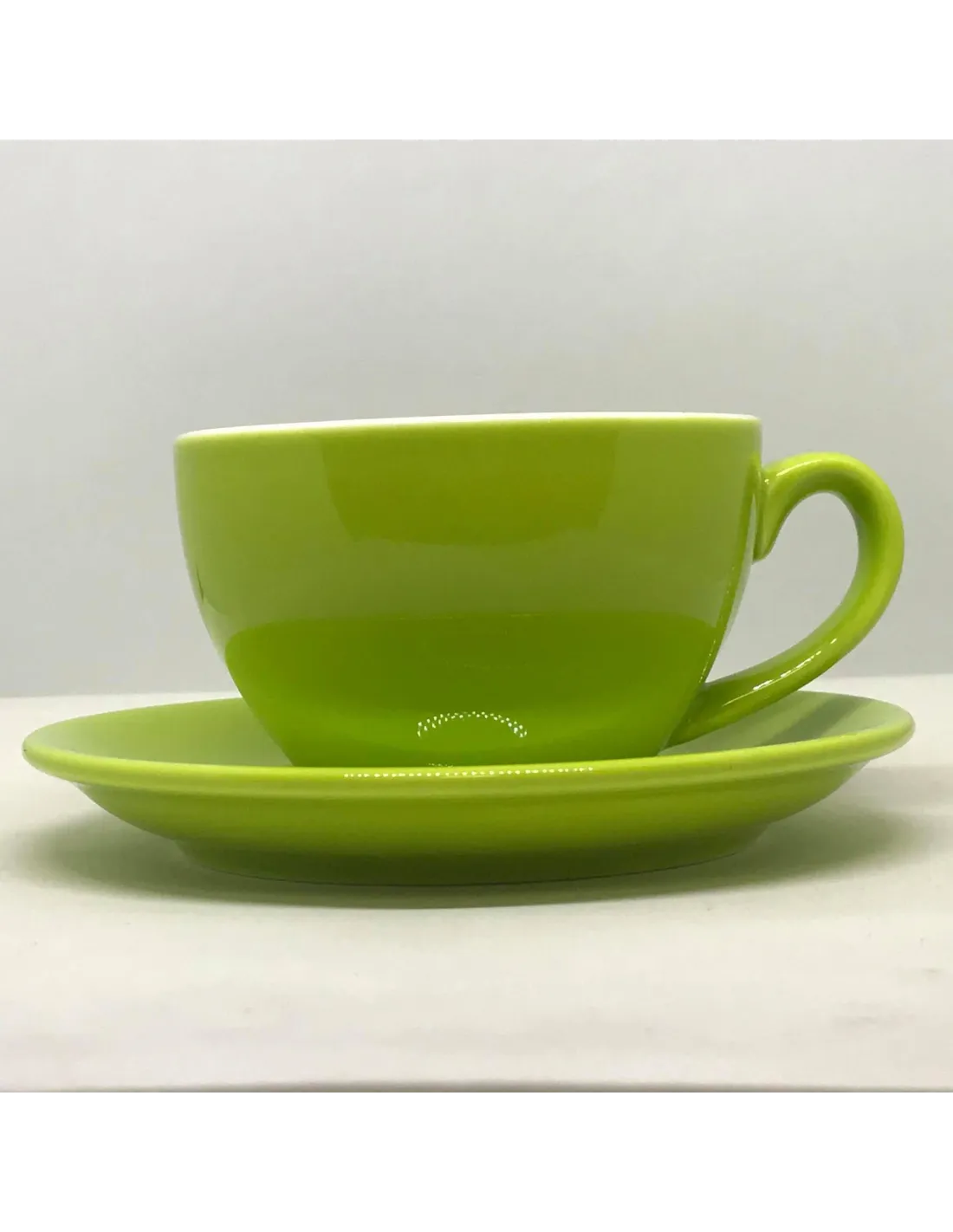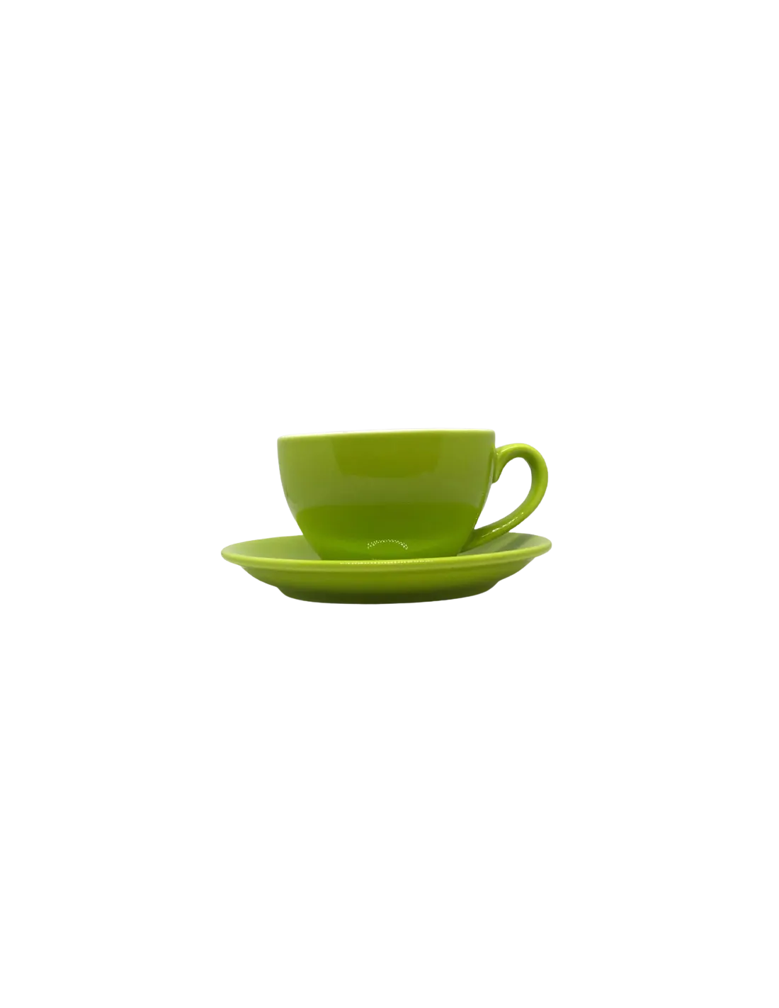 Porcelanasta skodelica za kapučino s prostornino 200 ml vključuje tudi krožnik . Barva: limeta .