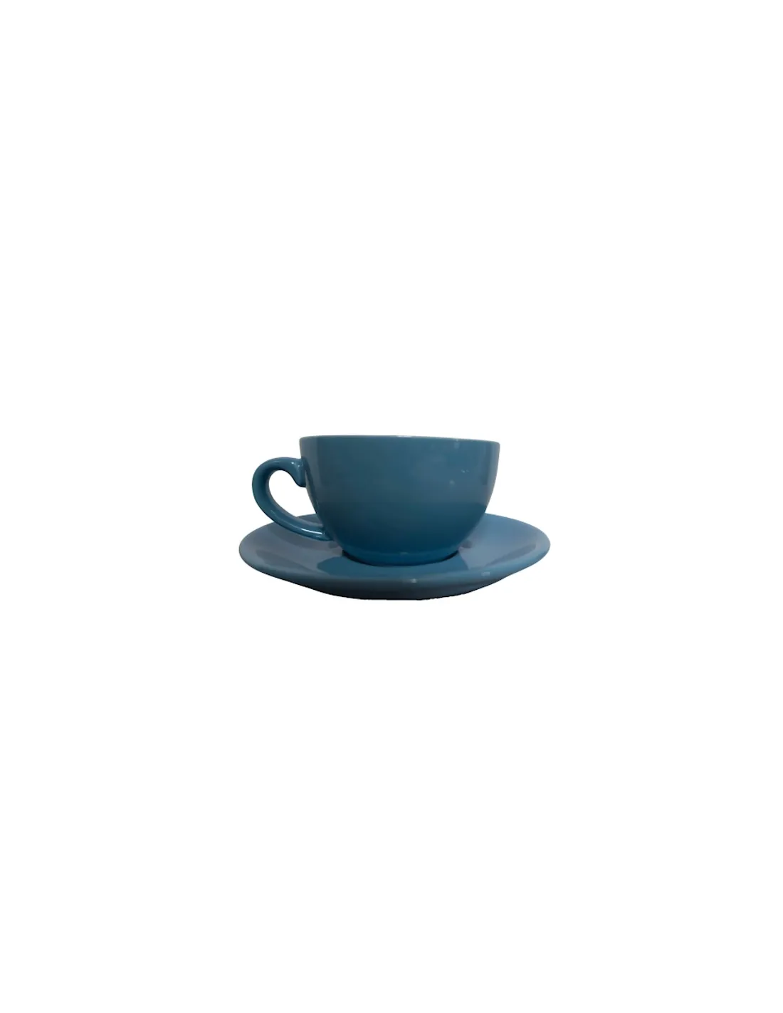 Porcelanasta skodelica za kapučino s prostornino 200 ml . Vključuje tudi krožnik . Barva: nebesno modra .