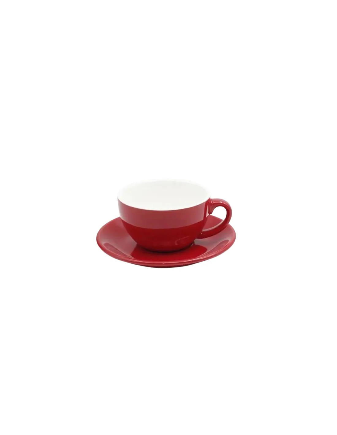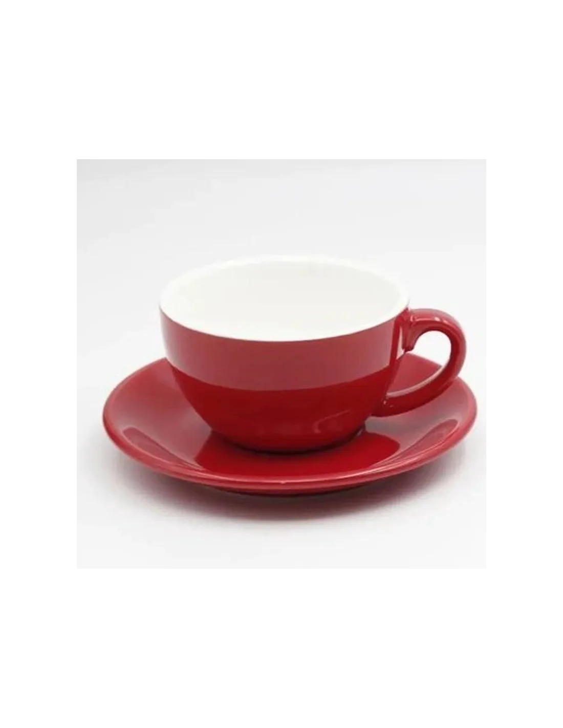 Porcelanasta skodelica za kapučino s prostornino 200 ml. Vključuje tudi krožnik . Barva: rdeča .