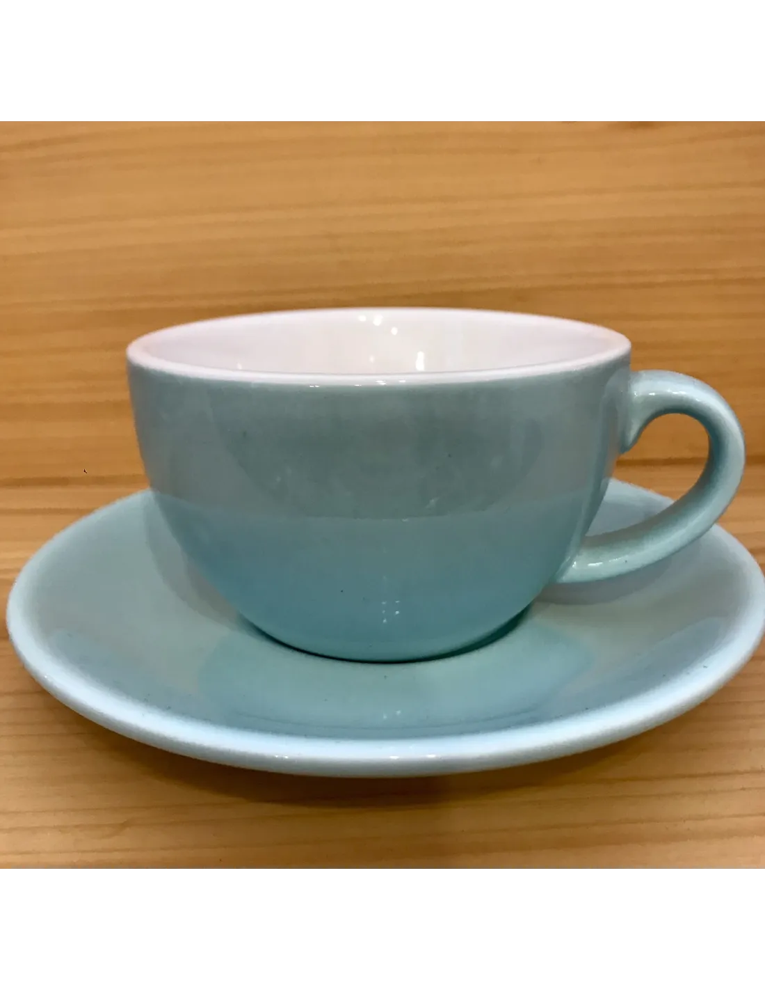 Porcelanasta skodelica za kapučino s prostornino 200 ml . Vključuje tudi krožnik . Barva: svetlo modra .