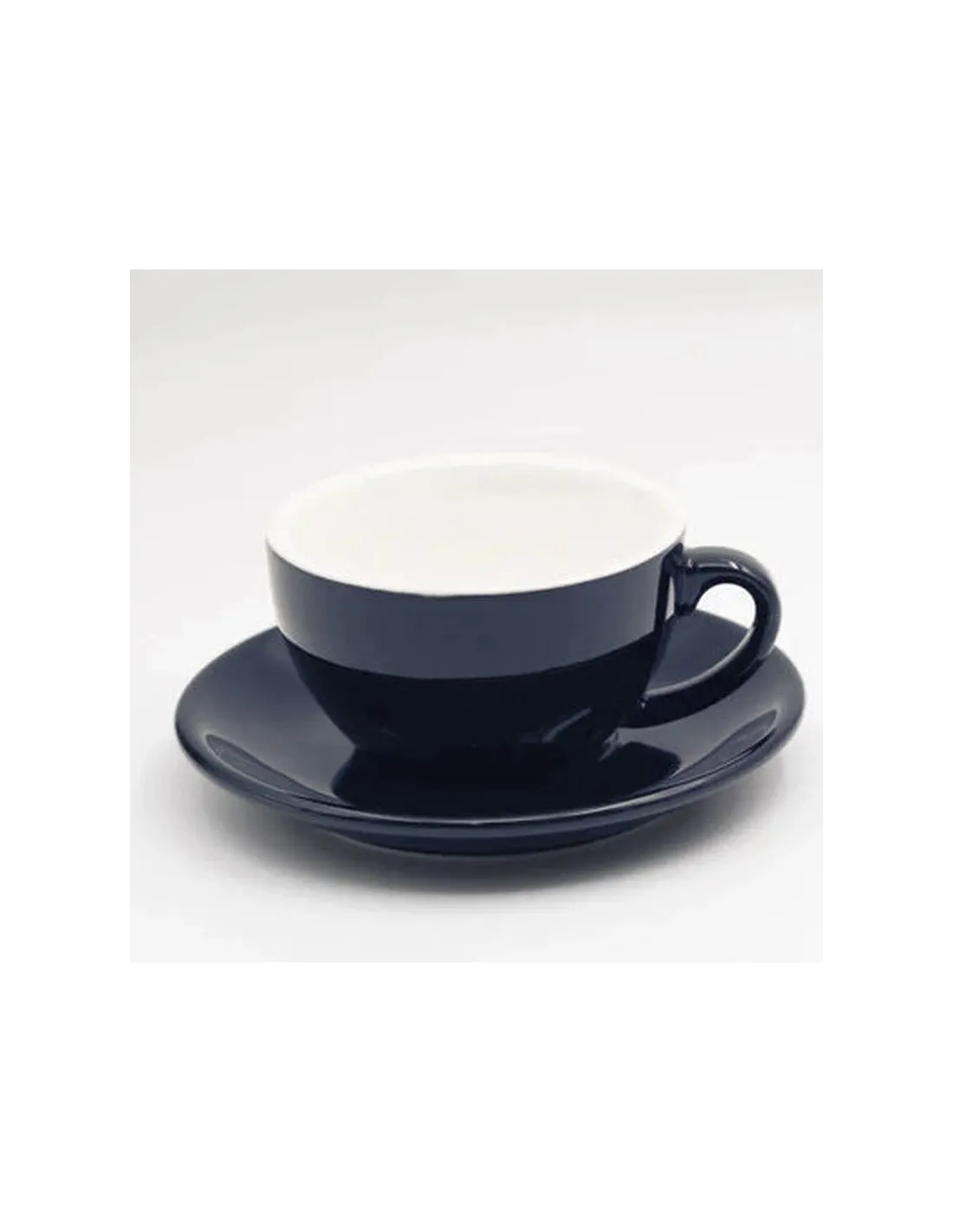 Porcelanasta skodelica za kapučino s prostornino 200 ml . Vključuje tudi krožnik . Barva: temno modra .