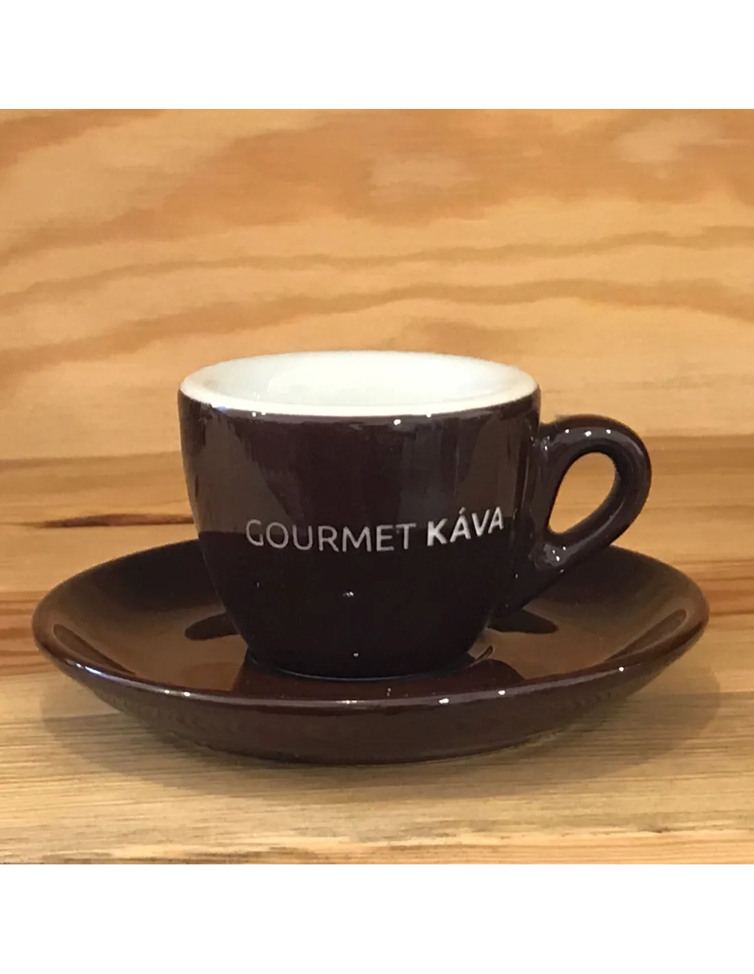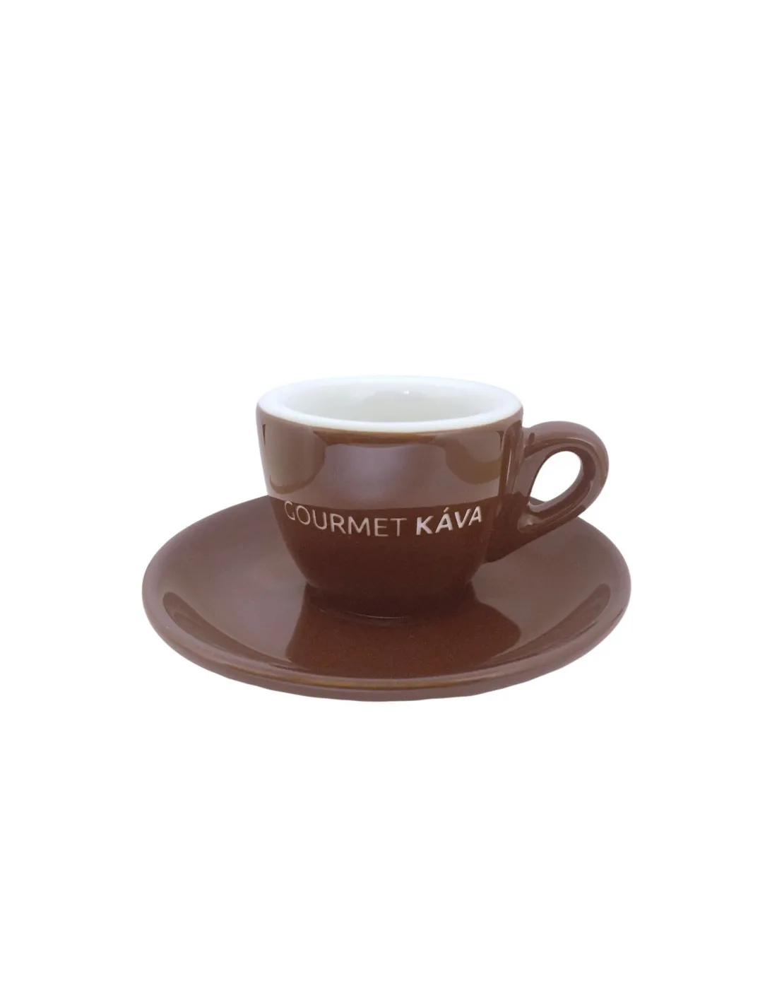 Porcelanska skodelica za espresso s prostornina 70ml P rimerna za klasični ali dvojni espresso.Vključuje podstavek. Barva: rjava z belim logotipom.