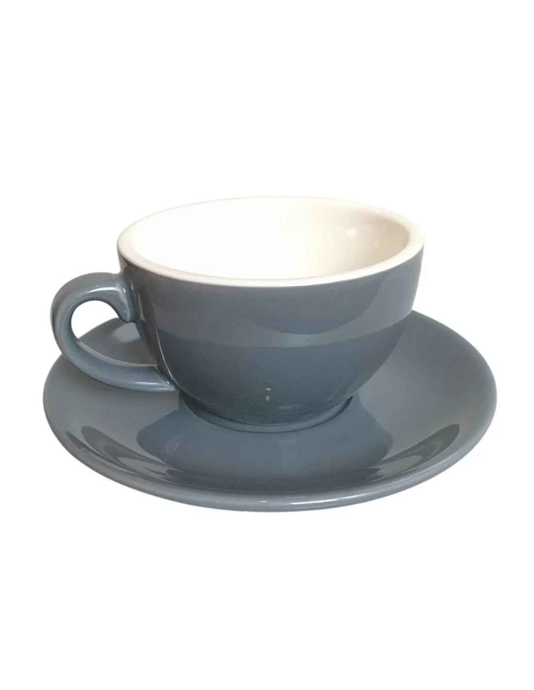Porcelanasta skodelica za kapučino s prostornino 200 0ml . Vključuje tudi krožnik . Barva: siva .