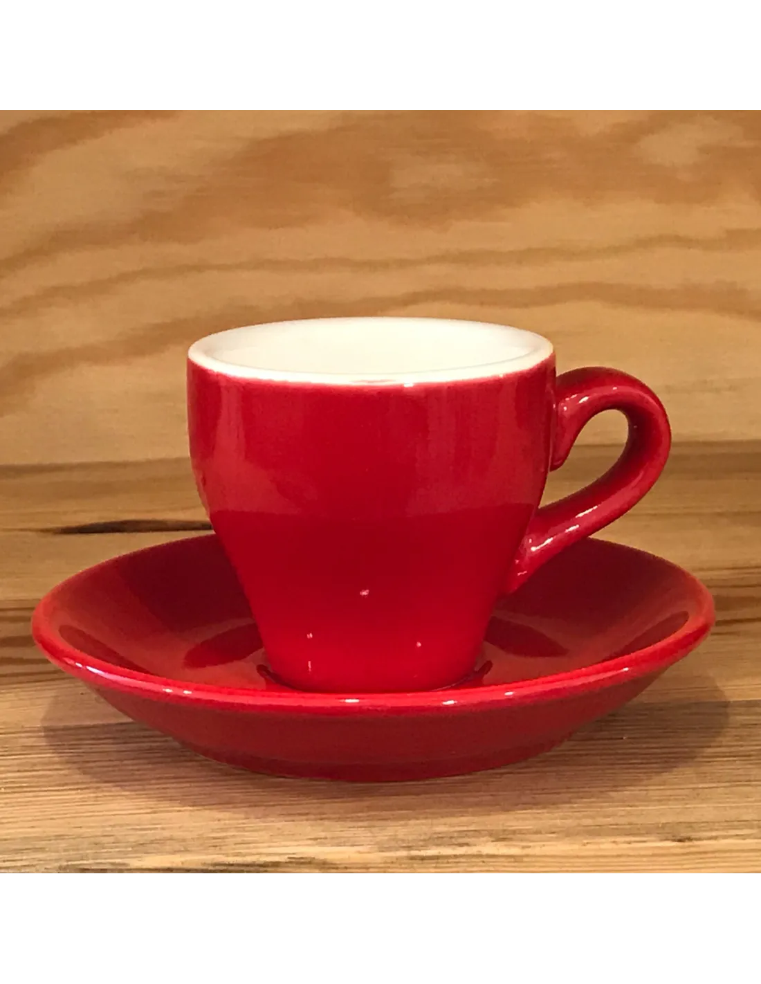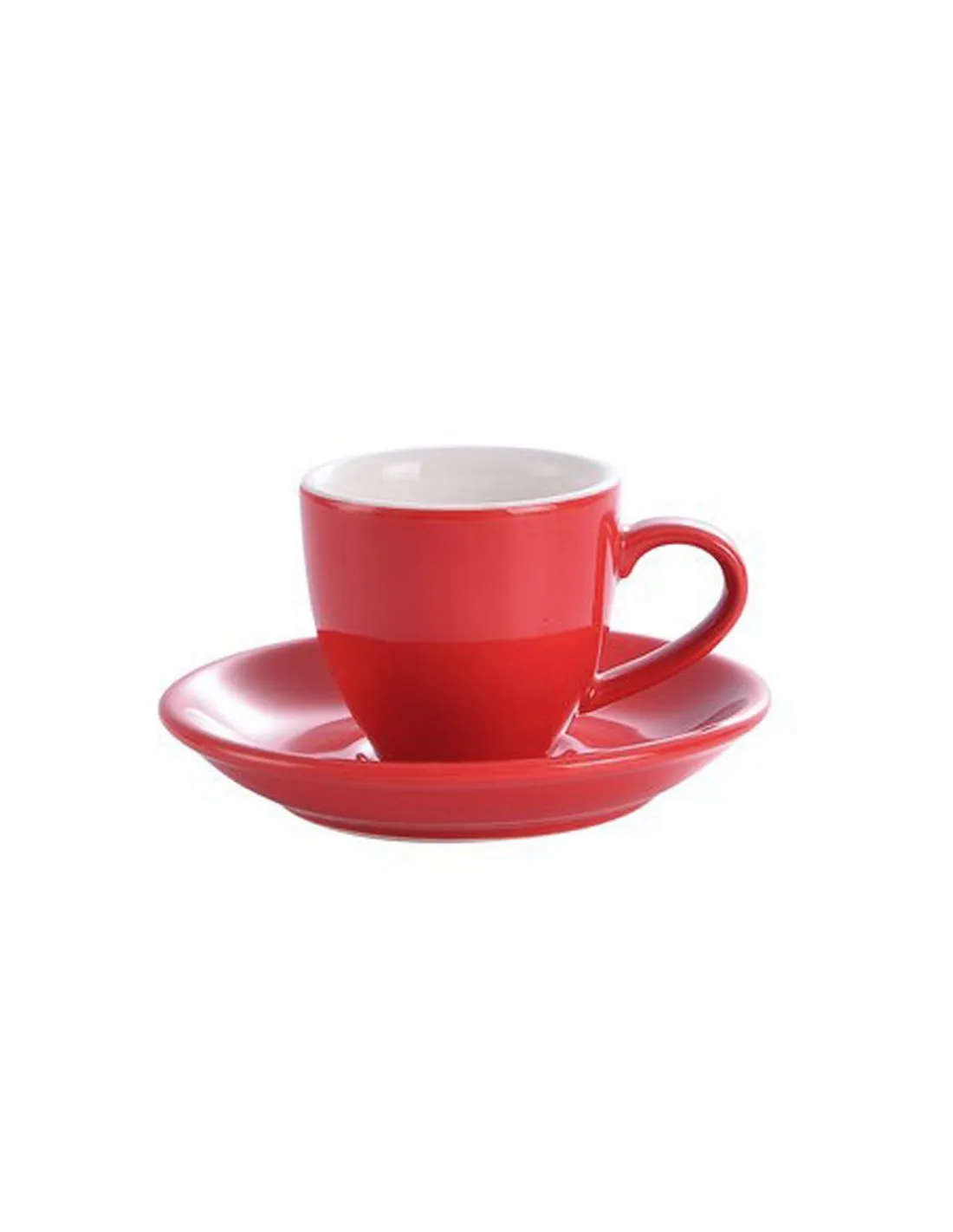 Porcelanska skodelica za espresso s prostornino 80 ml, primerna za klasični ali dvojni espresso.  Vključuje podstavek. Barva: rd