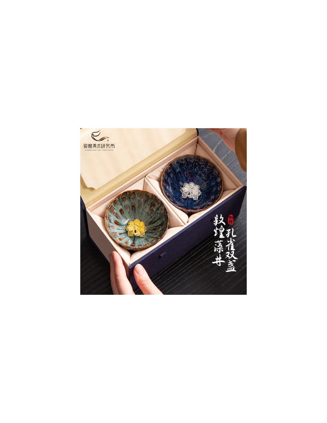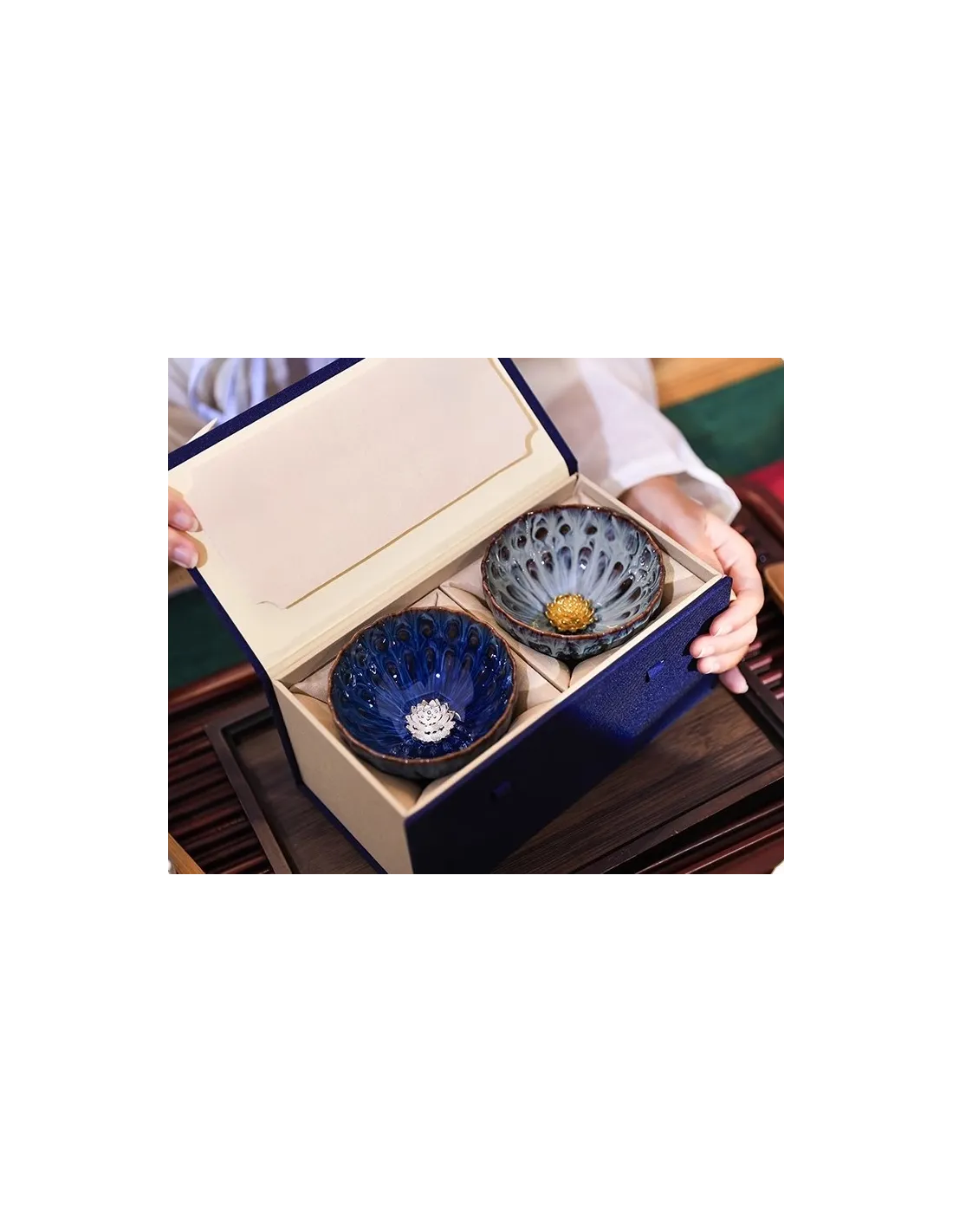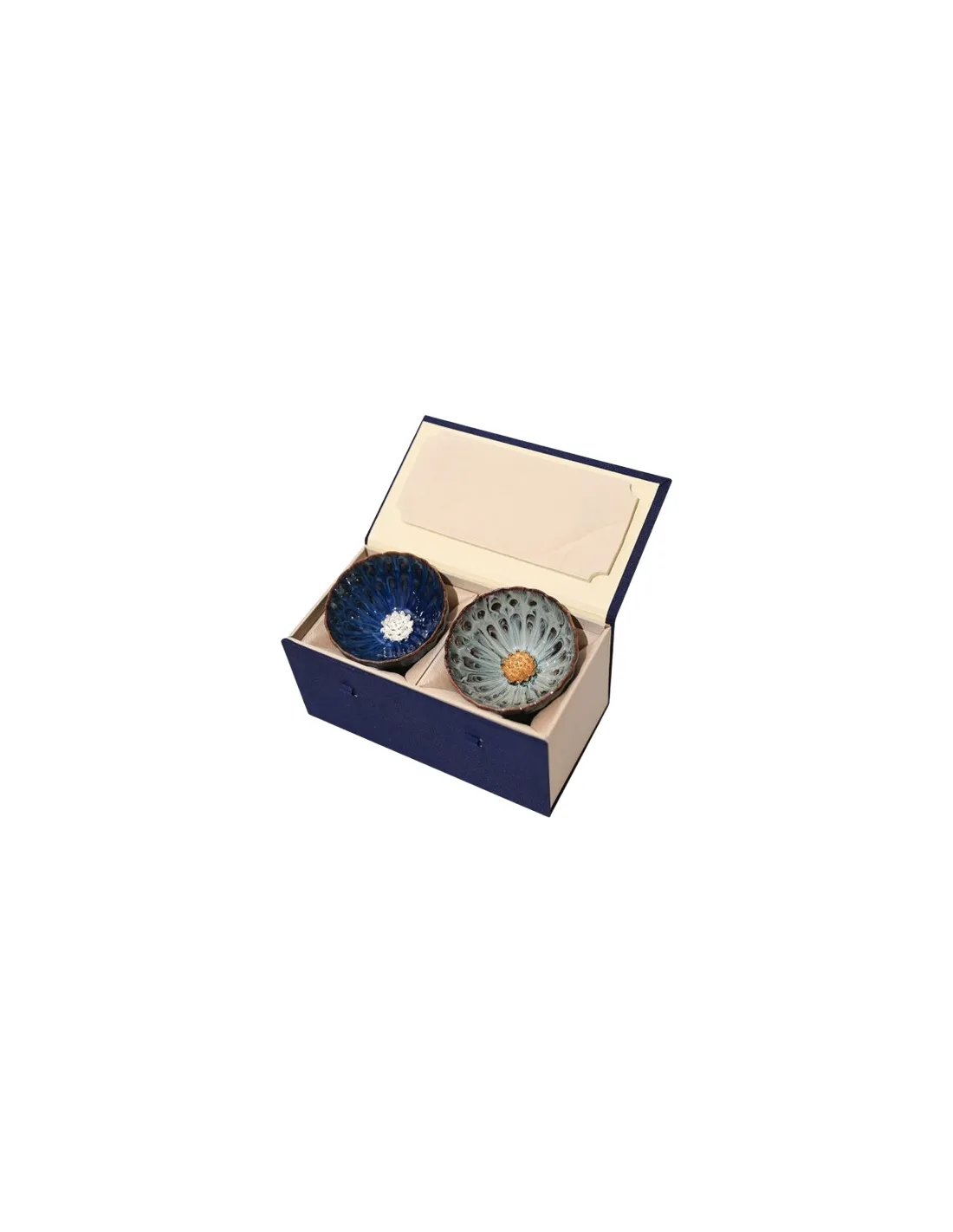 Eleganten set dveh skodelic Kaffia Blossom v kitajskem slogu, pakiran v luksuzno darilno škatlo.