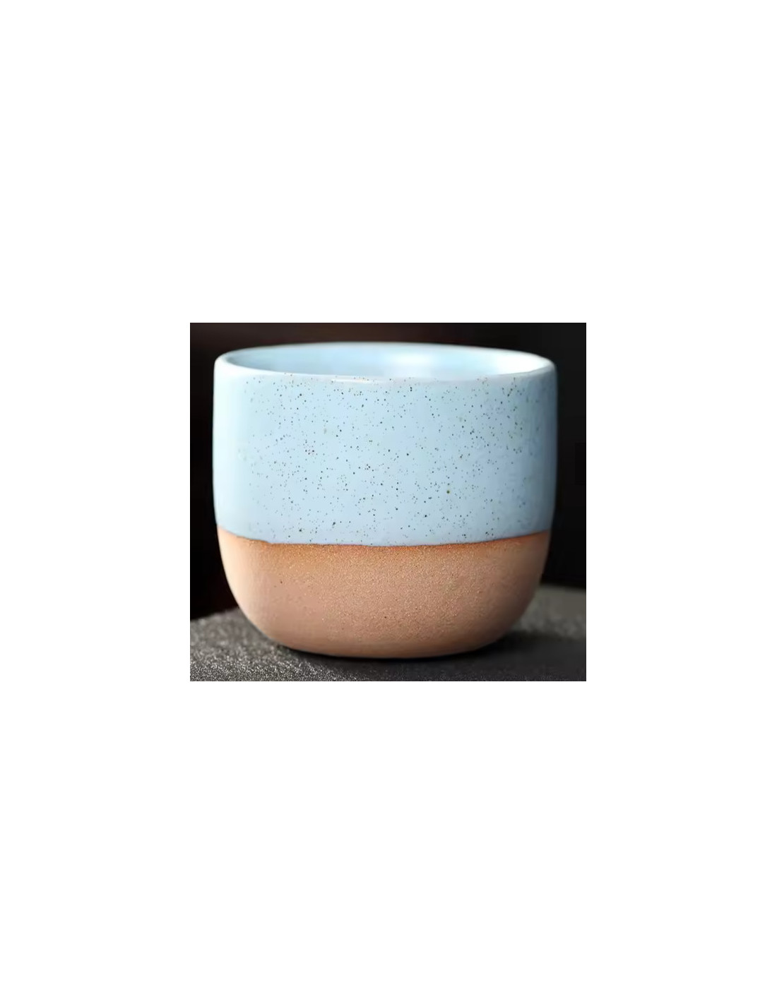 Elegantna keramična skodelica brez ročajev z nežno posuto glazuro. Udobno sede v roko in je idealna za espresso, lungo ali manjšo porcijo čaja.