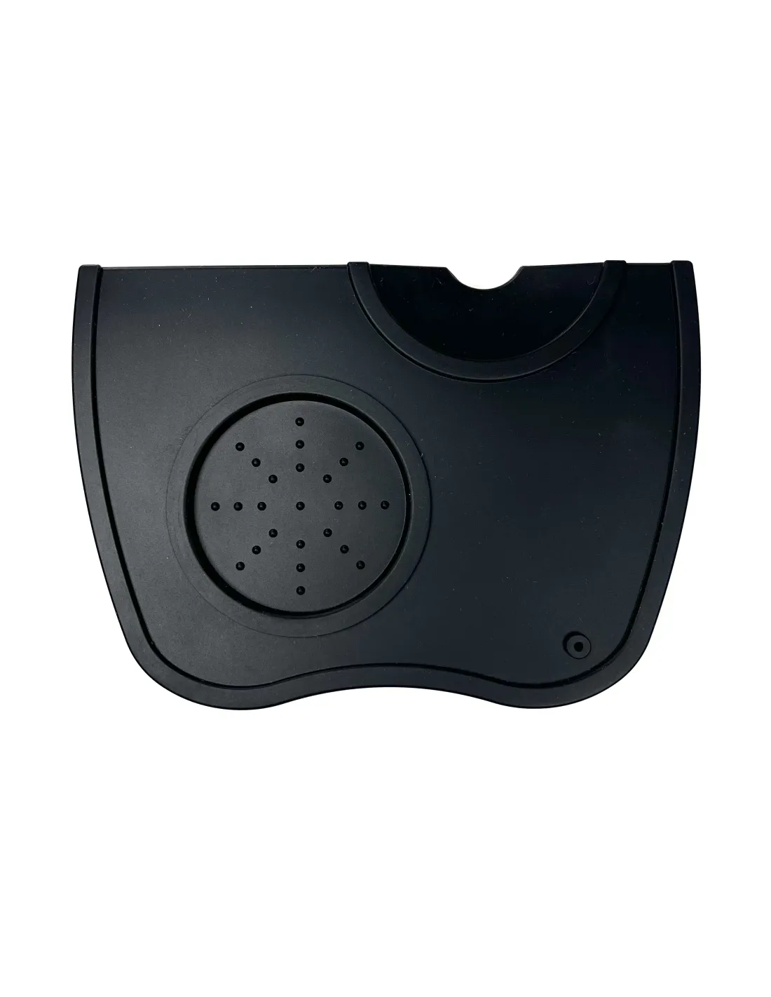 Gumijasta podloga je nepogrešljiv pripomoček za zaščito šanka pri nabijanju kave. Praktično upognjen sprednji del omogoča namestitev podloge na rob deske. Izrez za portafilter in tamper..