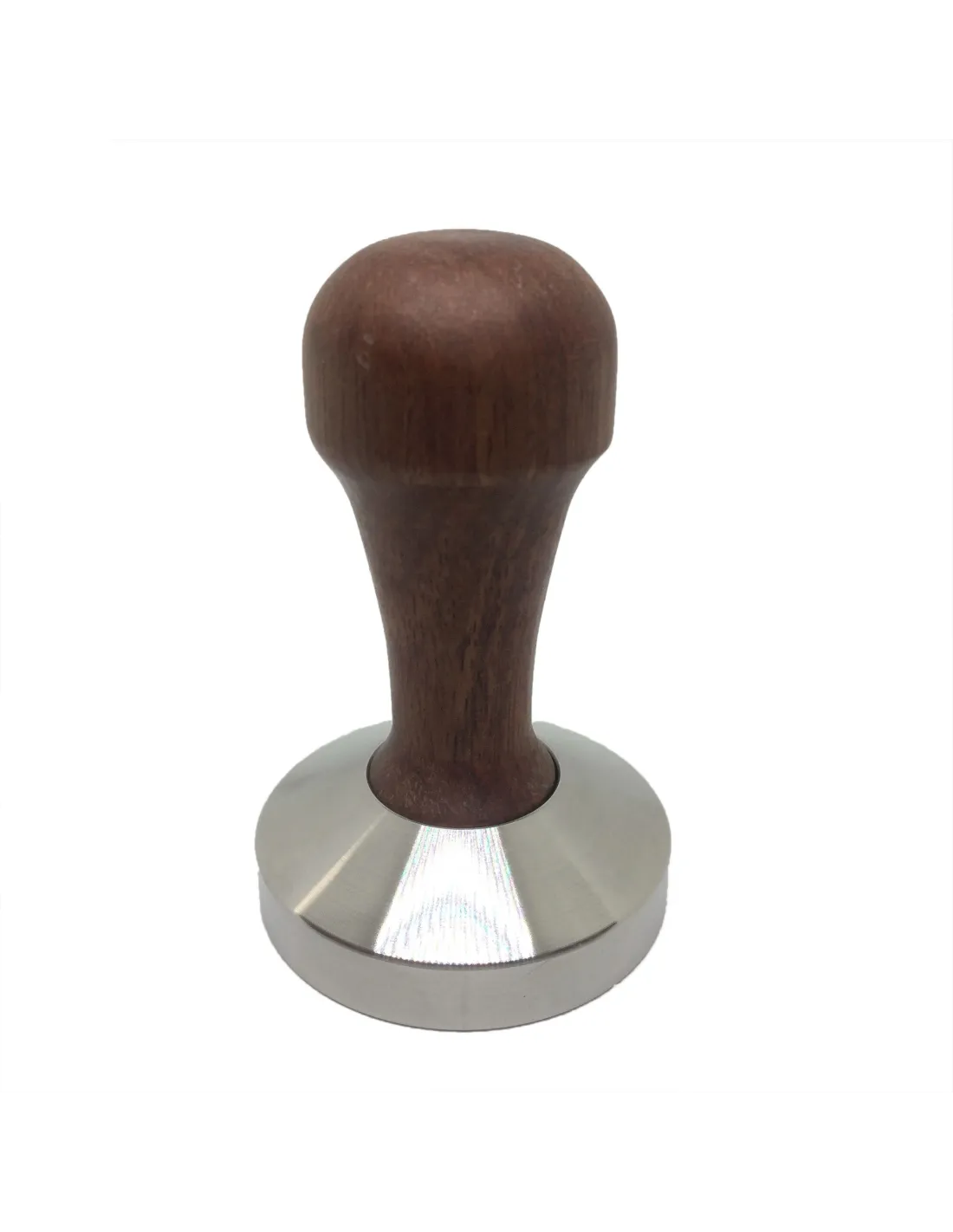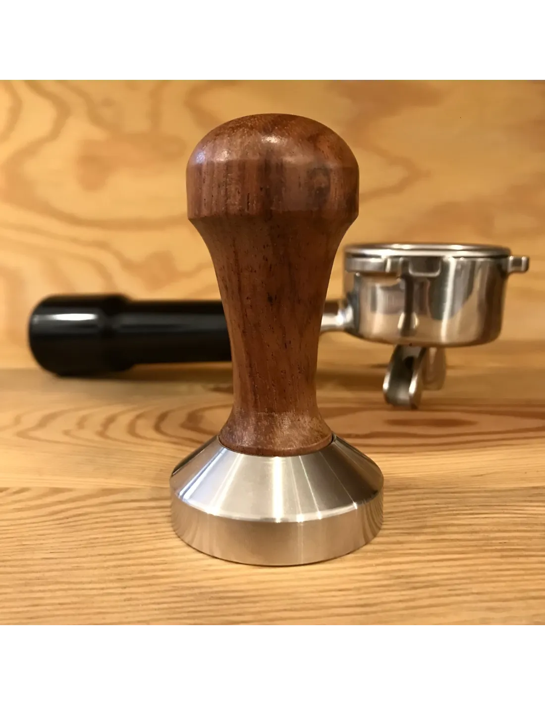 Profesionalni tamper flat ima ravno kovinsko podlago in ergonomski leseni ročaj, njegova teža pa je 370 g.